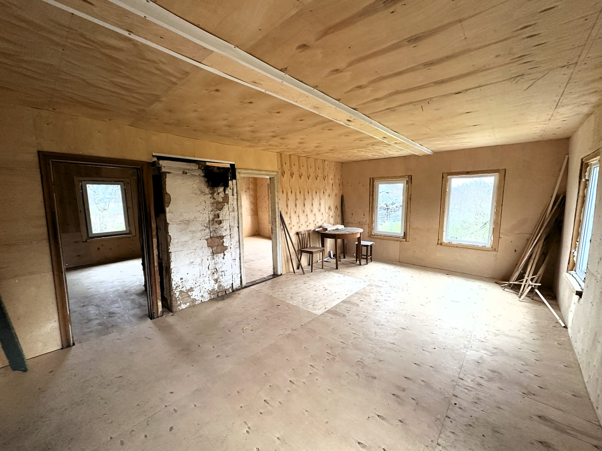 • 1 этaж (из прихожей вход в комнату 11,7 м.2 и большую комнату 19,8 м.2, из большой комнаты вход на кухню 7,6 м.2 и в др. комн. 13,7 м.2, см. план (1 и 3 помещение на плане объединены в большую комнату 19,8 м.2)