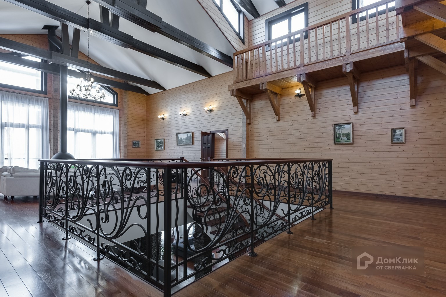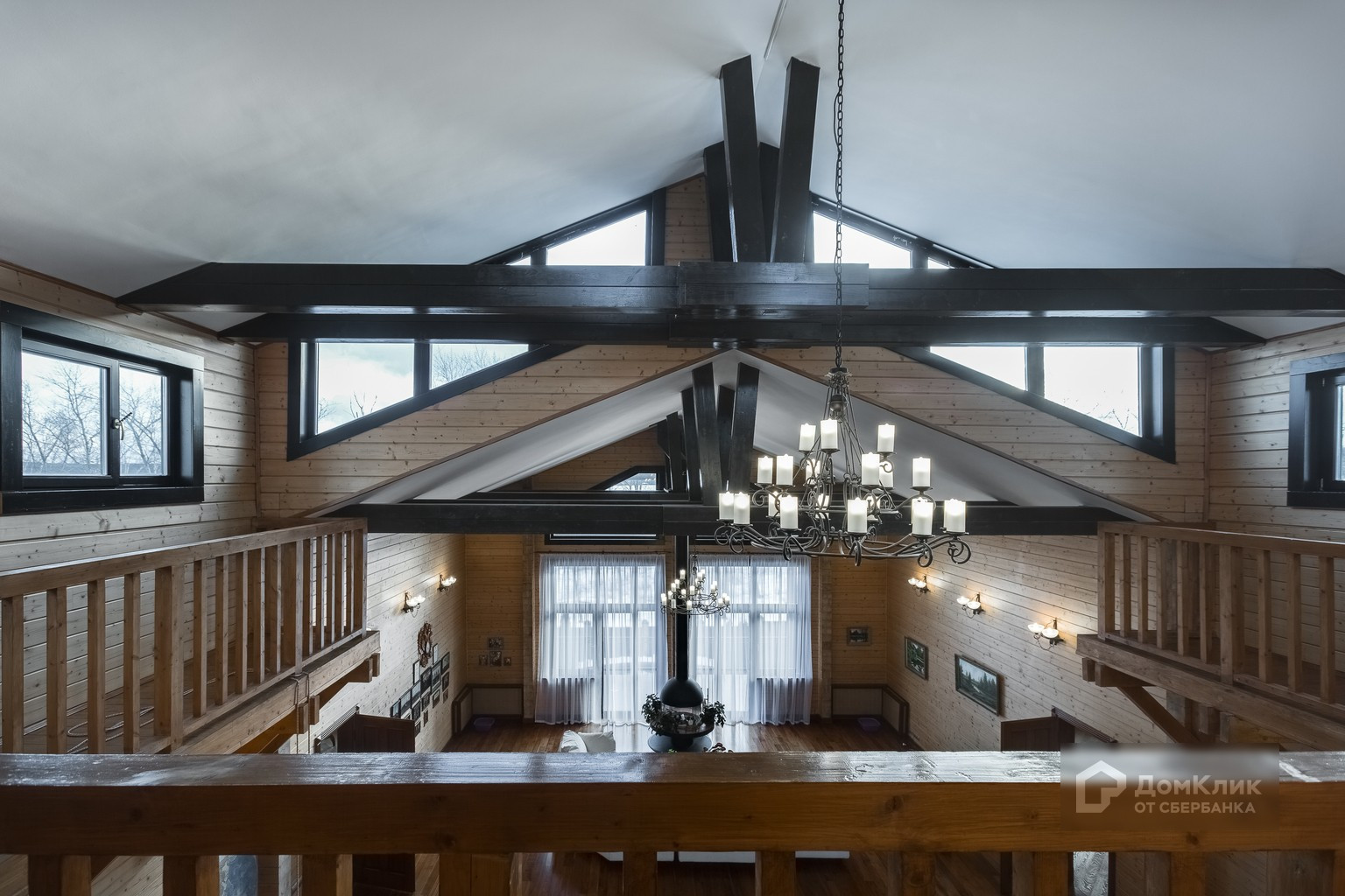 БЕЗ КОМИССИИ для покупателя. Лот 546344. Дом в стиле шале с антресолями и интерьером, соответствующем загородному проживанию. Расположен в ближайшем Подмосковье на просторном участке с авторским ландшафтным дизайном.