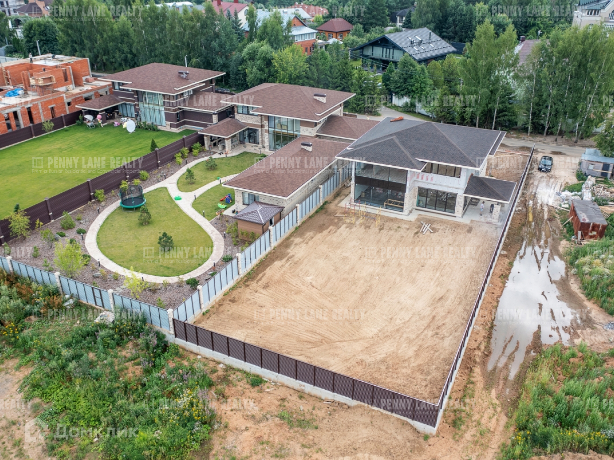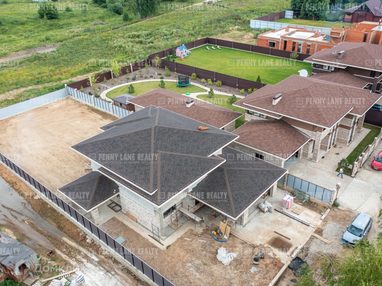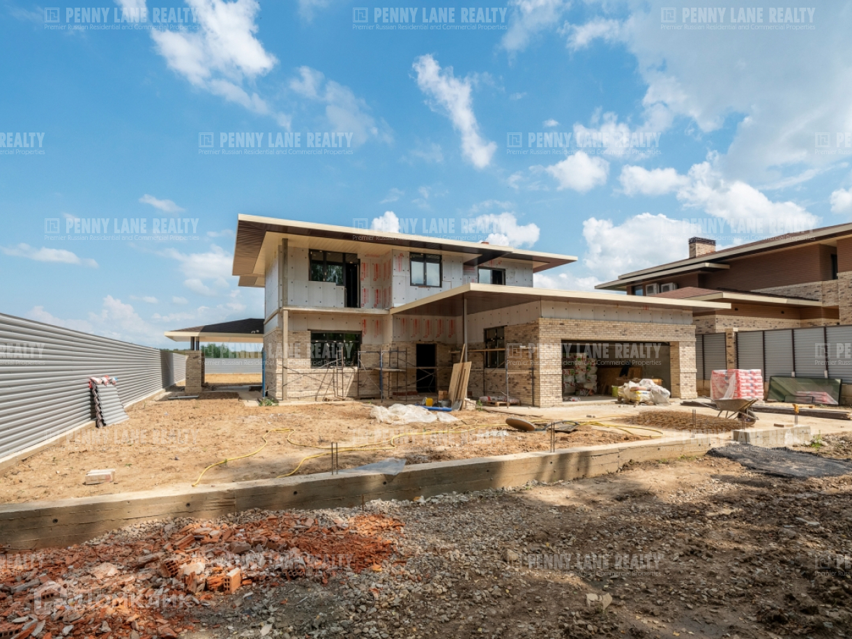 Ровный участок с ландшафтным дизайном. Дом построен по современному проекту в стиле "Райт" из керамического блока(кирпич). Фундамент - монолитная плита, стены - кирпич, перекрытия - монолитная плита, крыша - мягкая кровля, фасад - голландский клинкерный кирпич. Дом очень теплый, благодаря панорамному остеклению в доме много света.