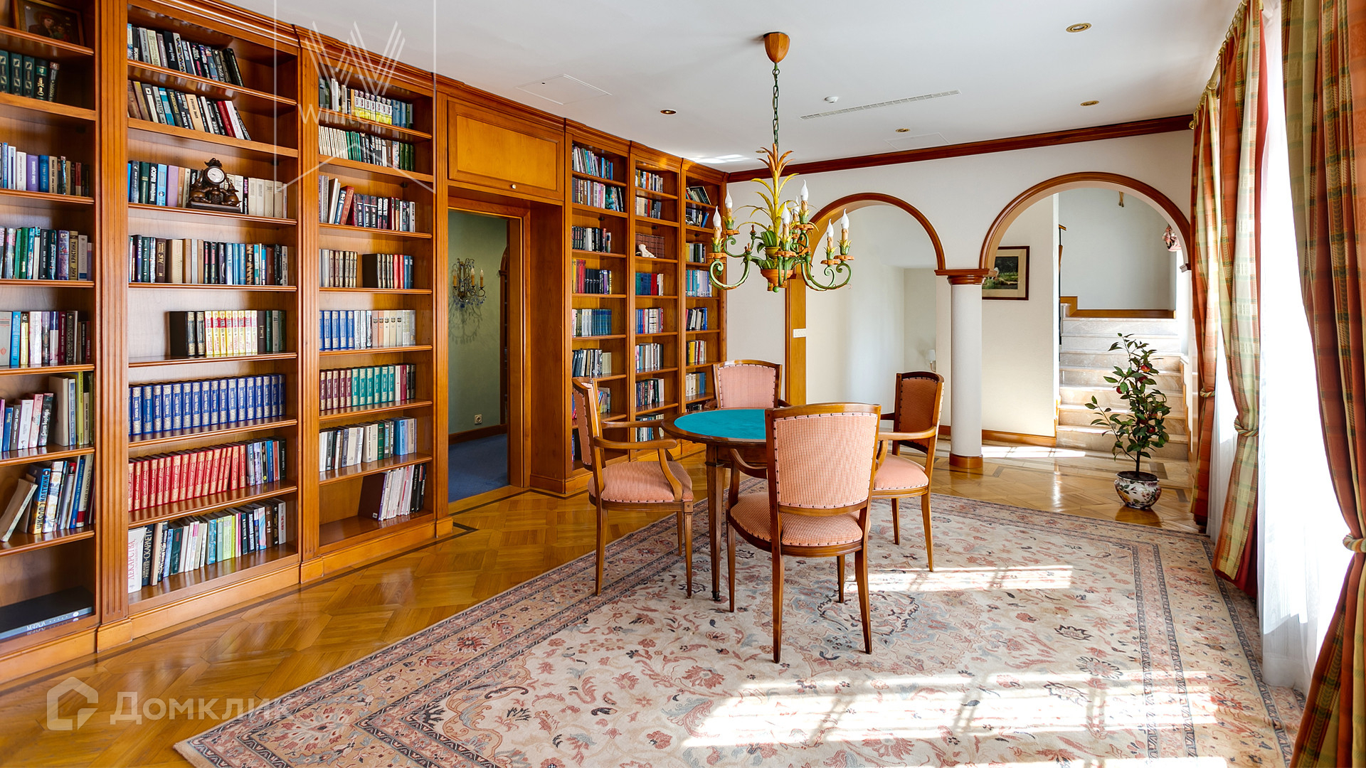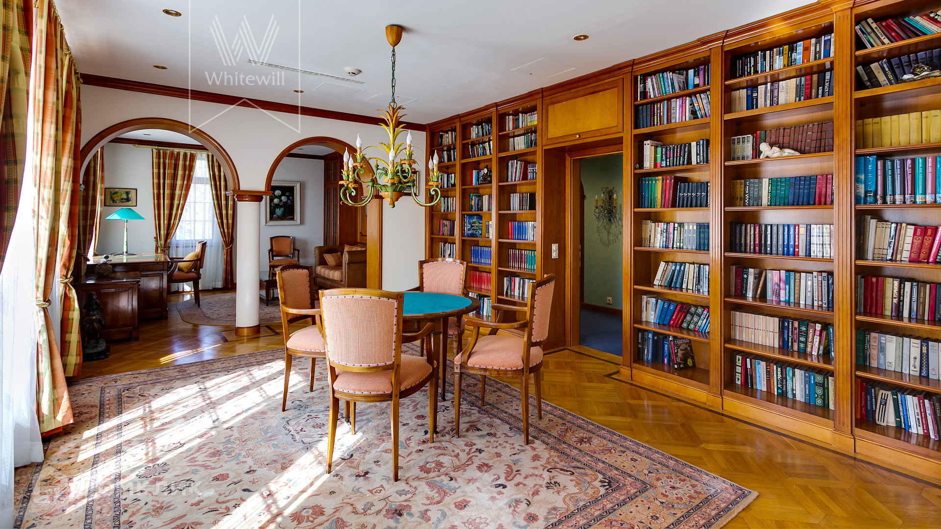 2 этаж. Гостиная-библиотека, кабинет, мастер-спальня с женской и мужской гардеробными и ванными комнатами.