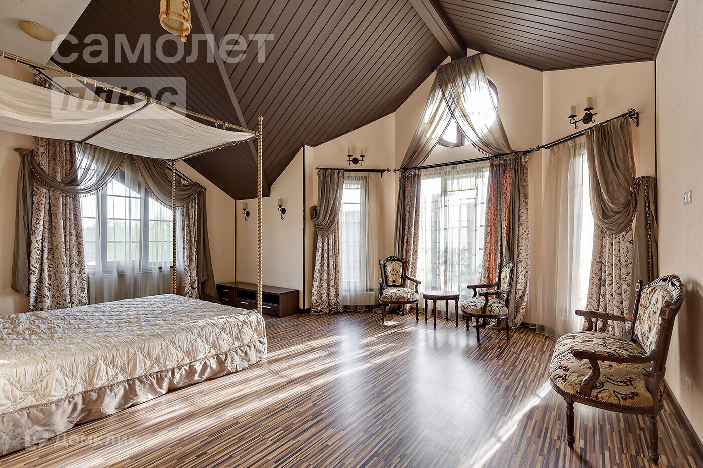 - 2 этаж - мастер-спальня со своей ванной комнатой и гардеробной, детская спальня, кабинет, комната свободного назначения. Перепады потолков до 5 метров.