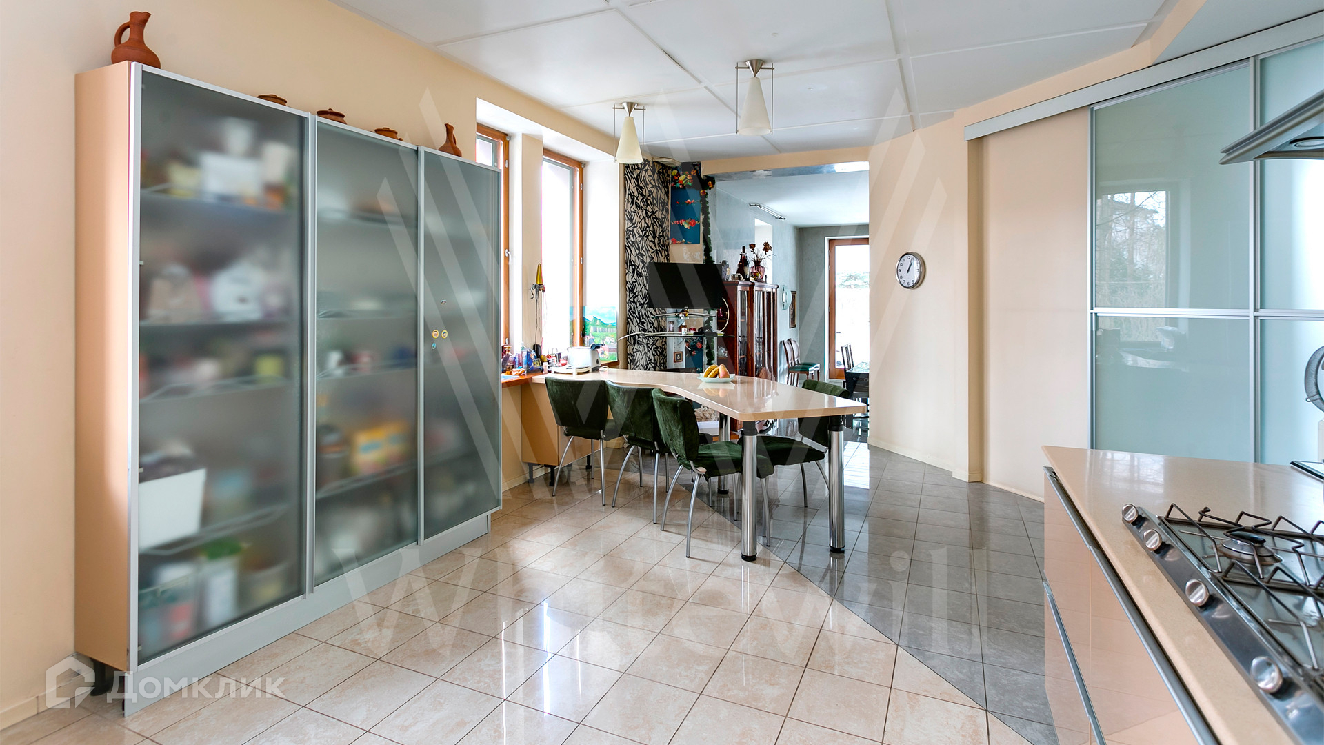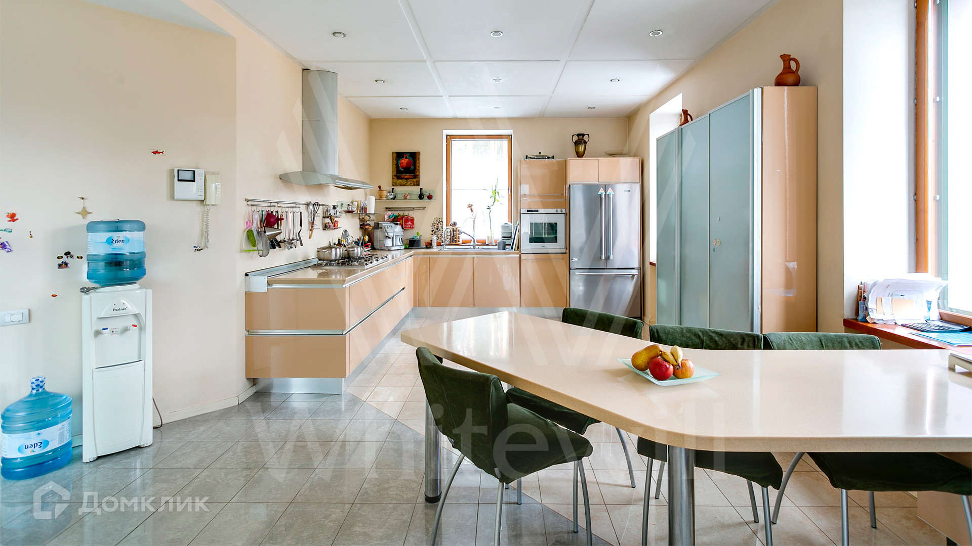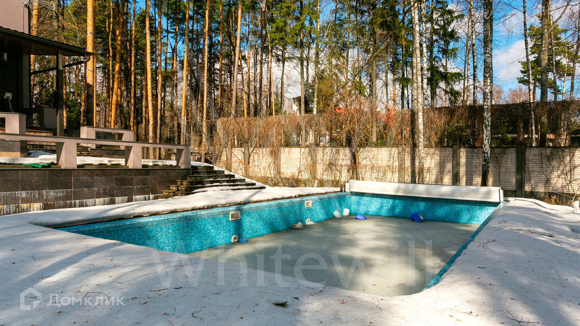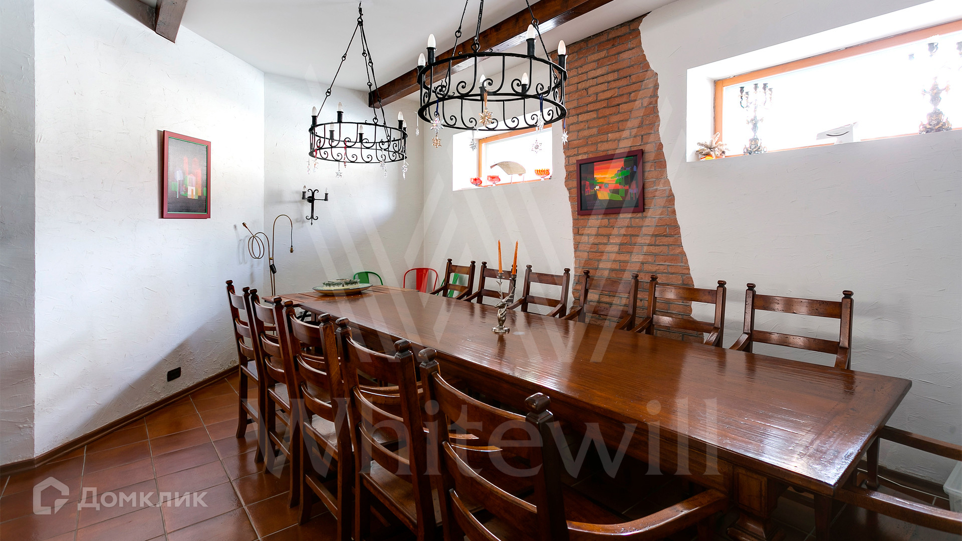 ID 12 390. Немчиново. Загородный дом площадью 650 м² расположен на лесном участке 25 соток. Фасад в европейском стиле облицован светлой розово-коричневой штукатуркой, цоколь украшен камнем. Интерьер выполнен в светлой гамме с добавлением ярких цветовых акцентов. В коттедже спланировали 3 спальни, гостиную с камином, вторым светом и выходом на террасу, кухню-столовую, бильярд, сануну, стилизованный под таверну зал с очагом. На территории предусмотрены открытый бассейн, зона барбекю, навес для 2 машин, гараж и домик для охраны. На участке выполнен ландшафтный дизайн, вымощены дорожки, растут многолетние сосны и березы.