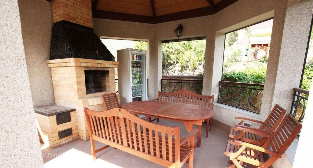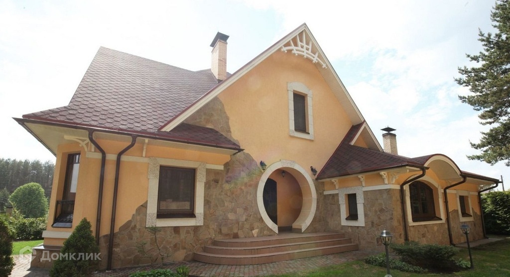 Основной дом построен из кирпича (фасад декоративная штукатурка) площадью 350 м. кв. На первом этаже которого расположенная большая гостиная со вторым светом, столовая и кухня со встроенной дорогостоящей мебелью.