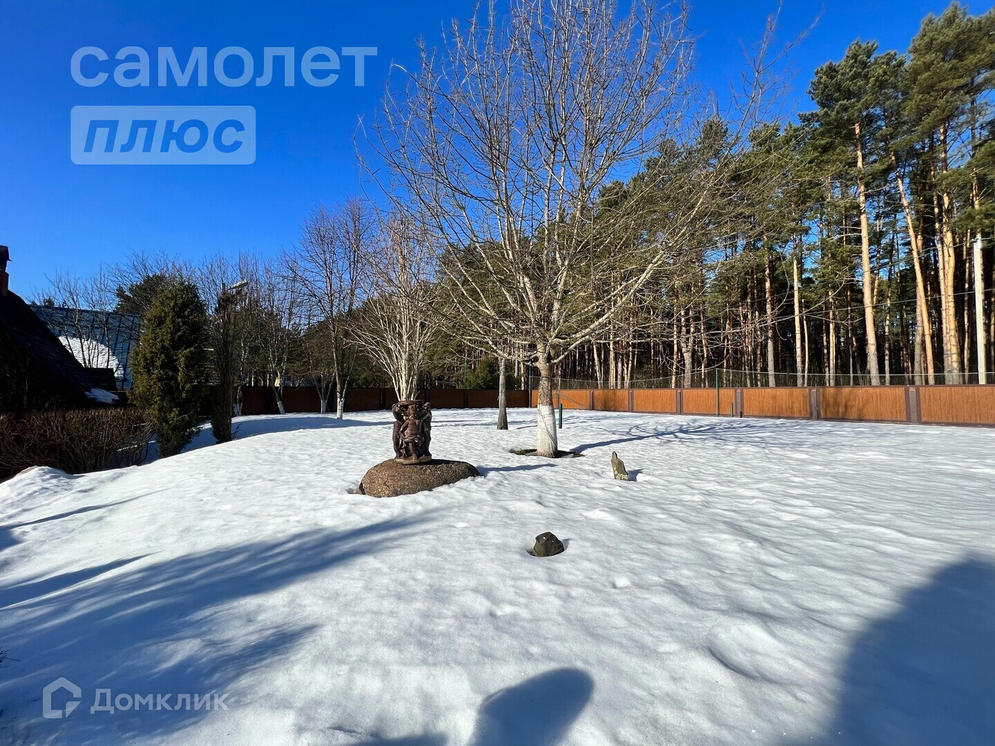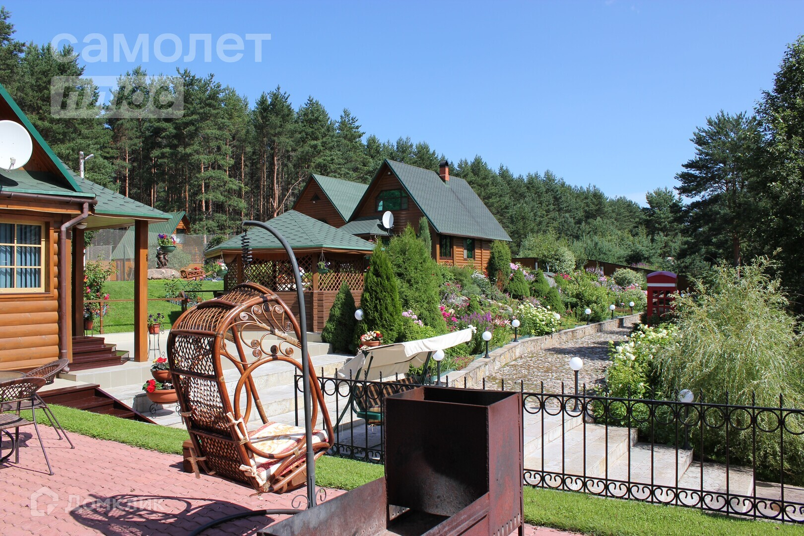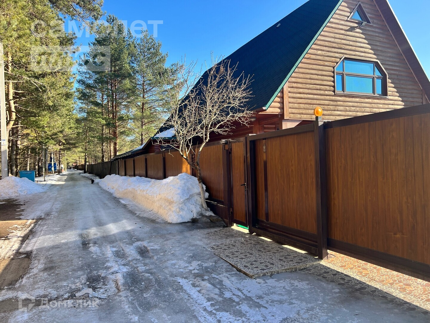 Участок огорожен по периметру забором из импортных сендвичей, облицован плиткой из кераморгранита. Ворота автоматические.