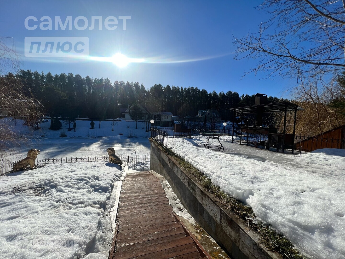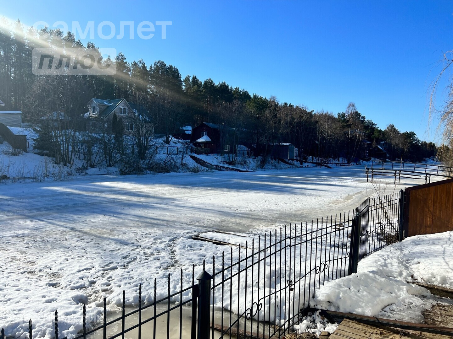 Земельный участок ИЖС общей площадью 33 сотки на южном берегу Петровского канала. Участок облагорожен и благоустроен-газон по периметру, часть территории выложена керамогранитом, есть теннисный корт, посажены липа, дуб, каштан, рябина, ольха, клен, кустарники и много цветов. На участке расположены 2 коттеджа, баня, 2 гаража под катерные суда с автоматическим выходом на воду (до выхода в р.Волхов 2 км, в р.Сясь 8 км), прибрежная зона в собственности с ухоженным садом-огородом, 2 пирса. Берег участка укреплен камнем. Есть 2 колодца, 2 насосные станции, несколько септиков.