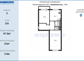 Продажа двухкомнатной квартиры, 47.3 м2, деревня Ненимяки, 114