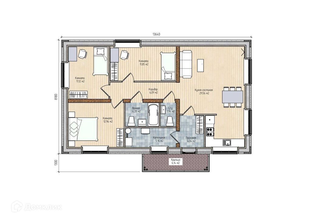 Жилая площадь 56 м2