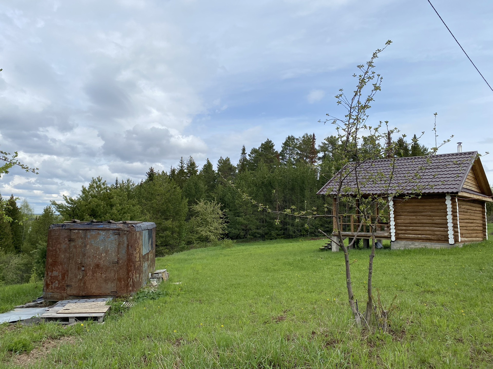 Участок на опушке леса с красивейшими видами на Каму и деревню. На участке дом-баня (по документам жилой дом) и хозпостройка (вагончик). Баня построена из осиновых брёвен, все брёвна обработаны снаружи и внутри. Внутри на полу керамическая плитка с электрическими тёплыми полами в комнате отдыха и парилке. В доме разведена вся электрика. Вода привозная. В парилке выполнена отделка из липовой вагонки. Хорошая печь с большим баком из нержавейки. Есть холодный небольшой мансардный этаж. Газ на границе с участком, можно подключить по догазификации. Вся территория каждый год обрабатывается от клещей. Кадастровый номер участка 18:18:056001:639.