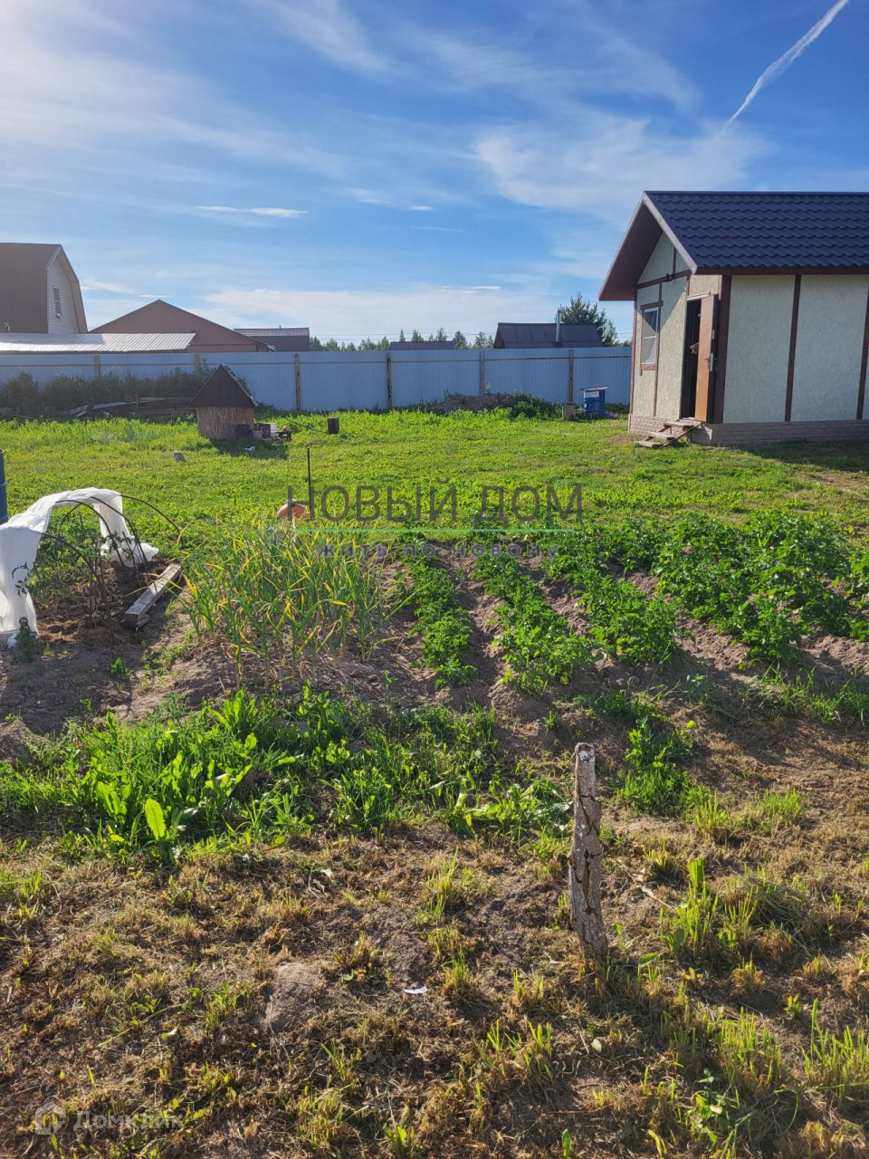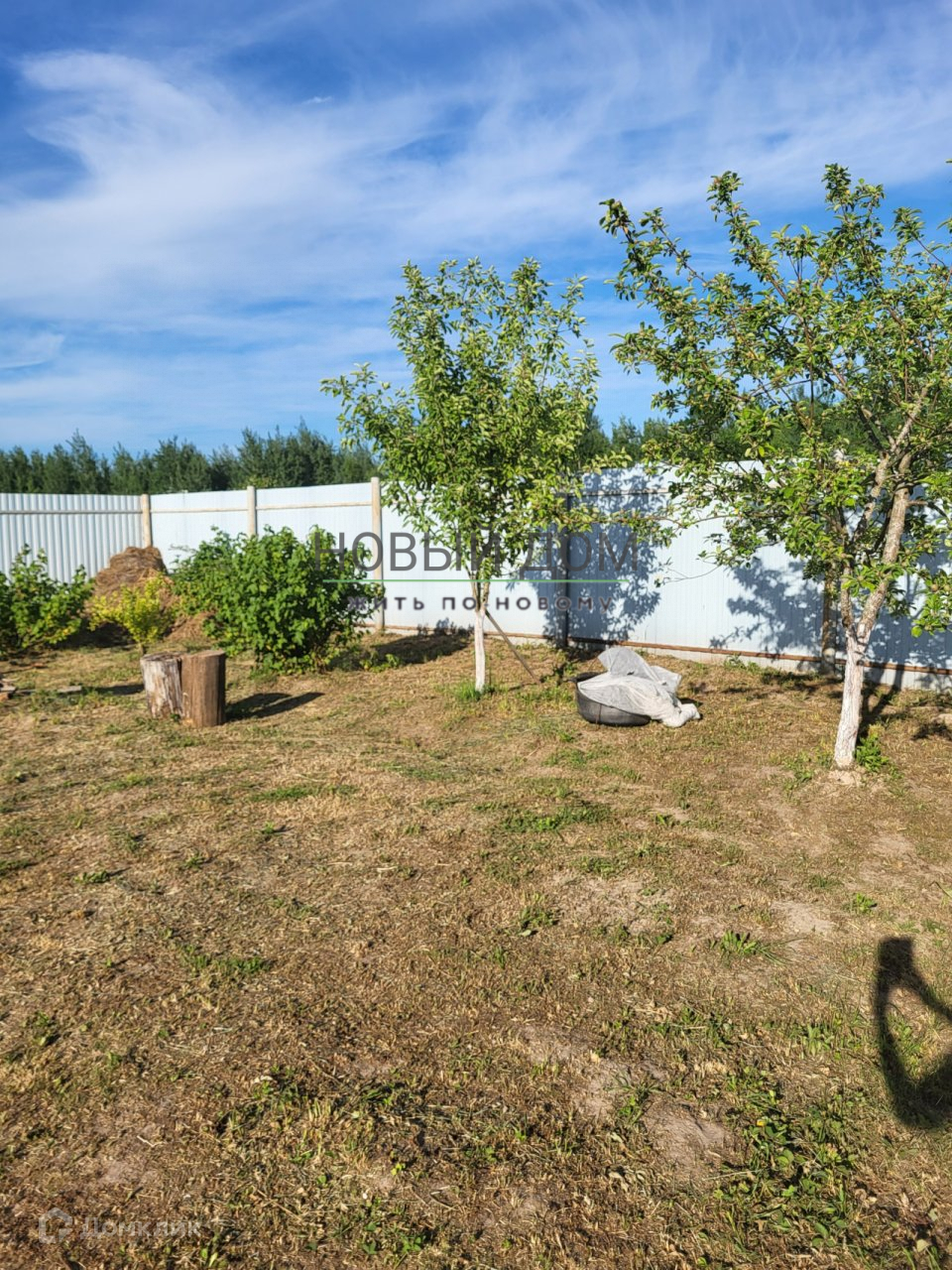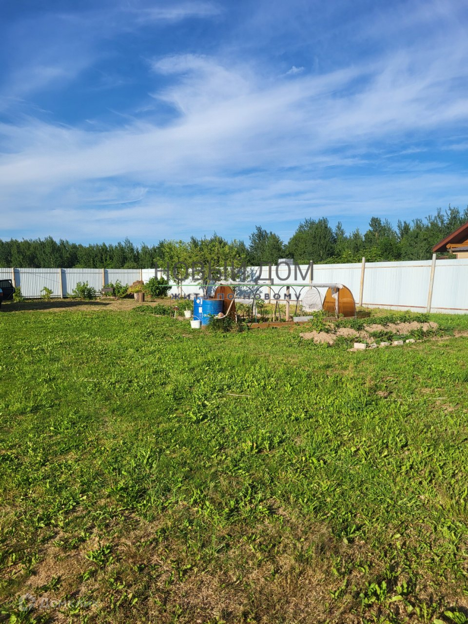 Участок огорожен забором из профлиста.
