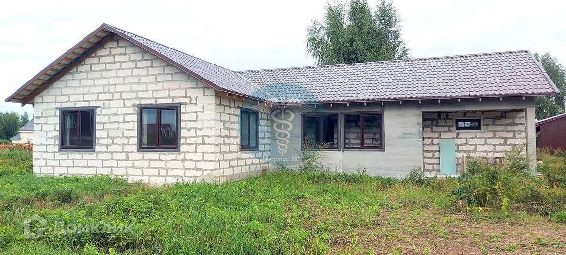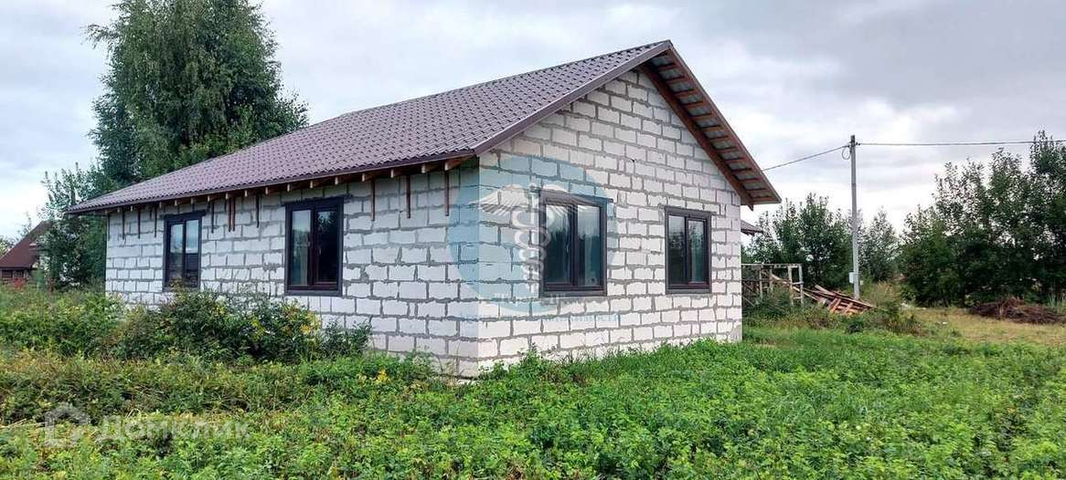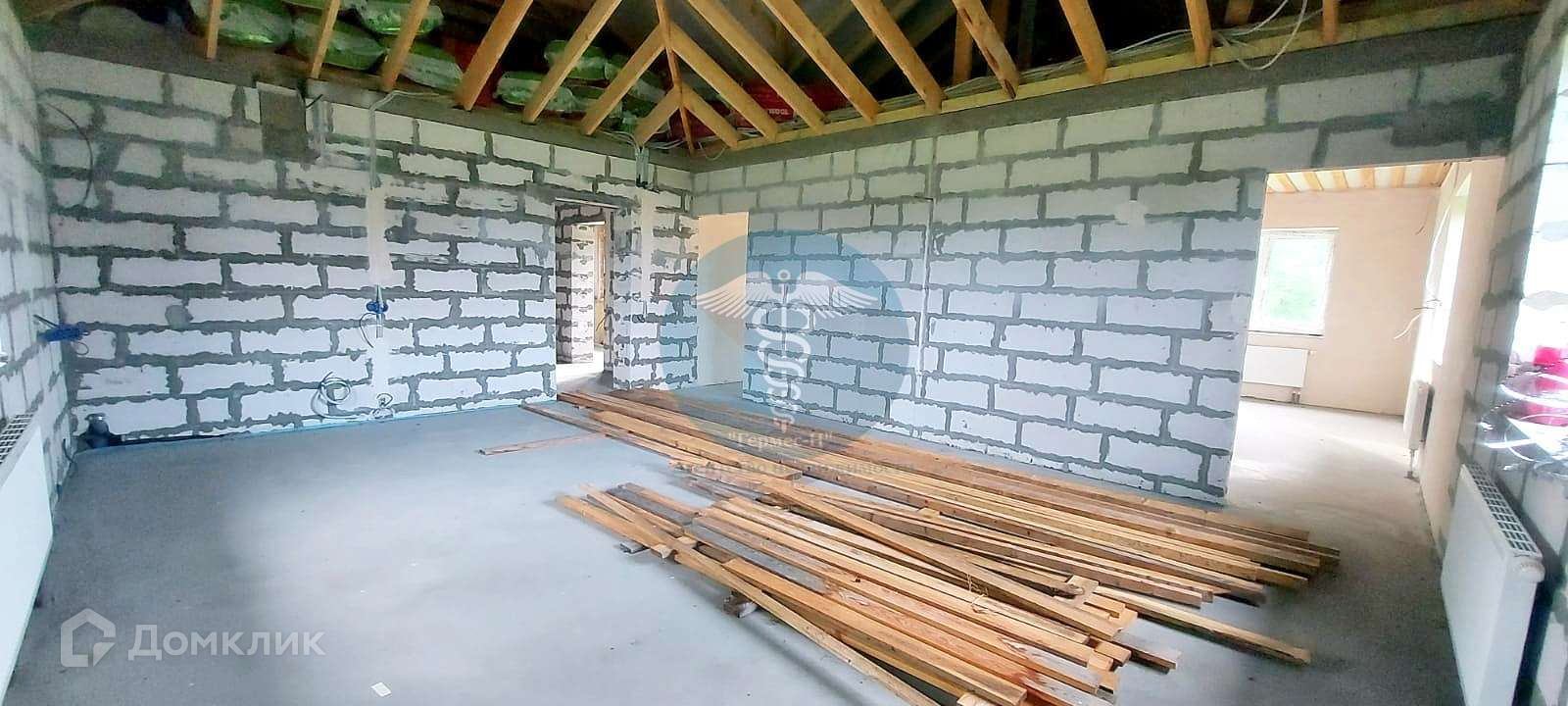Дом 123 м2, 2021 года постройки, из газобетона H+H D500, толщиной 375мм, частично выполнена внутренняя отделка. Фундамент дома - монолитная плита, армирование стен через каждые 3 ряда, крыша металлочерепица.