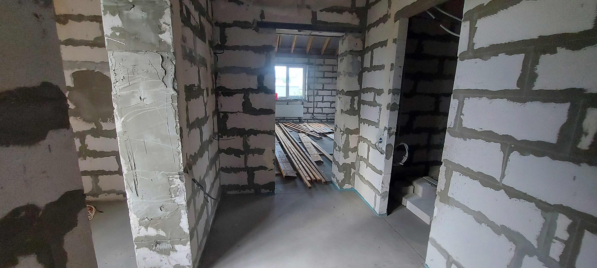 Потолки в кухне-гостиной 3.90м, во всем остальном доме 2.80м. Фундамент монолитная плита, армирование стен через каждые 3 ряда, крыша металлочерепица. Дом построен при соблюдении всех строительных норм.