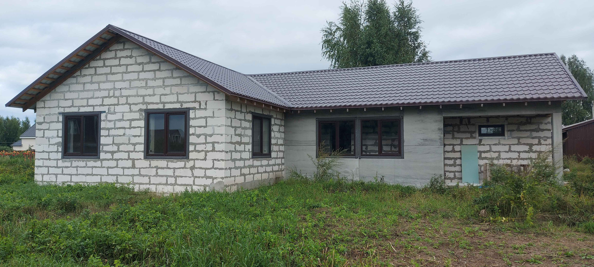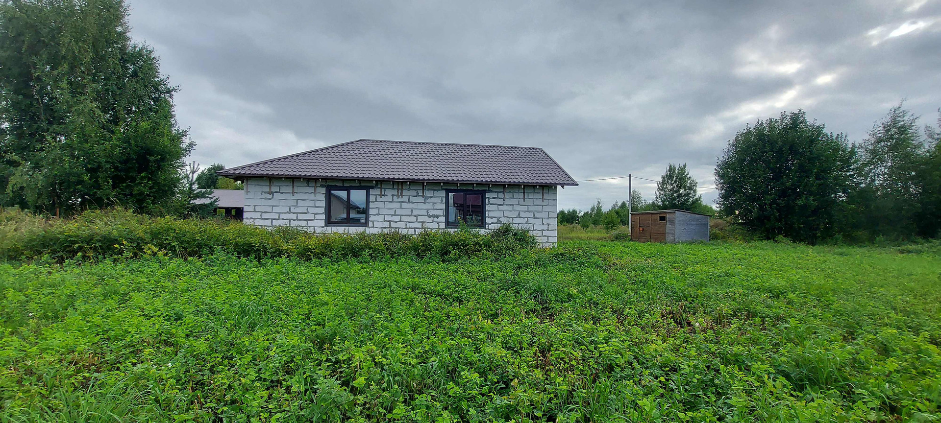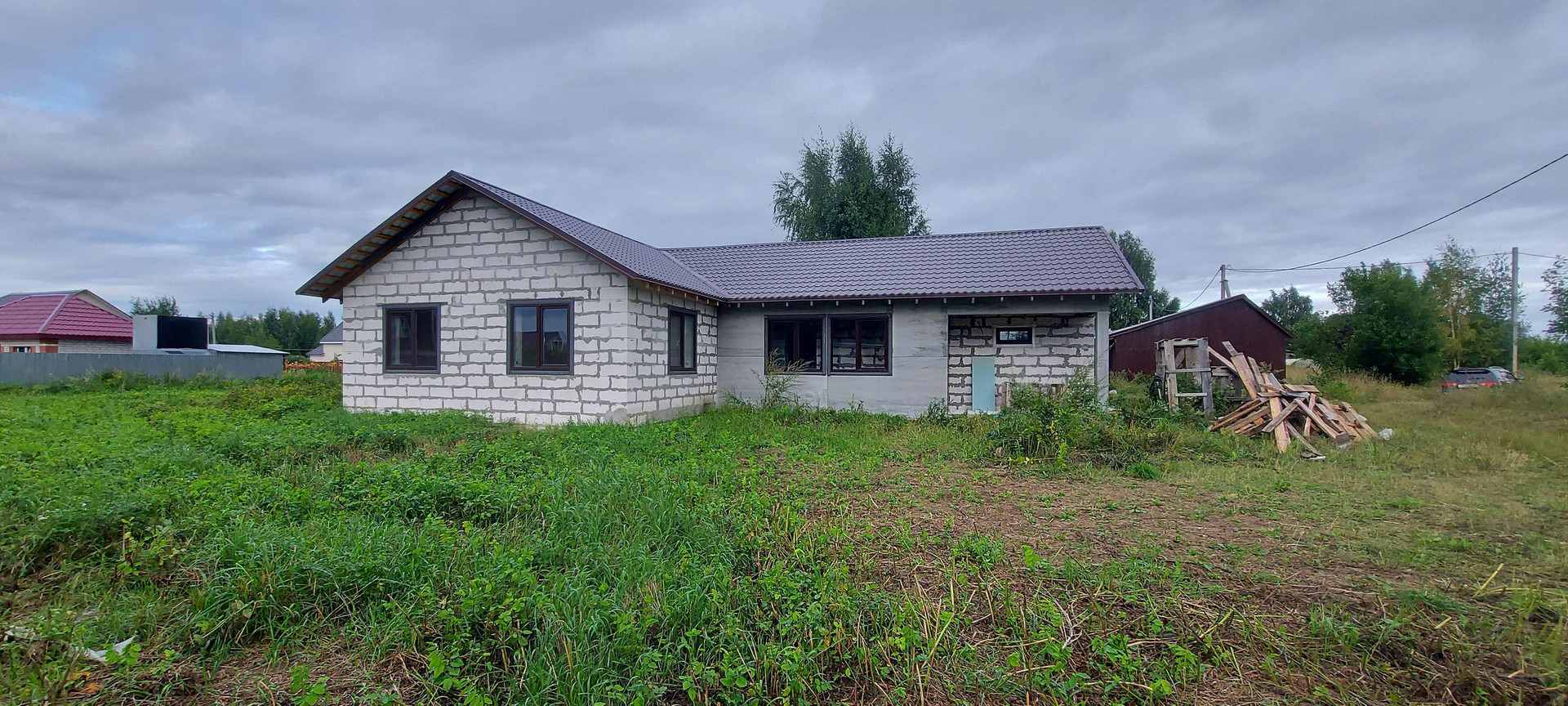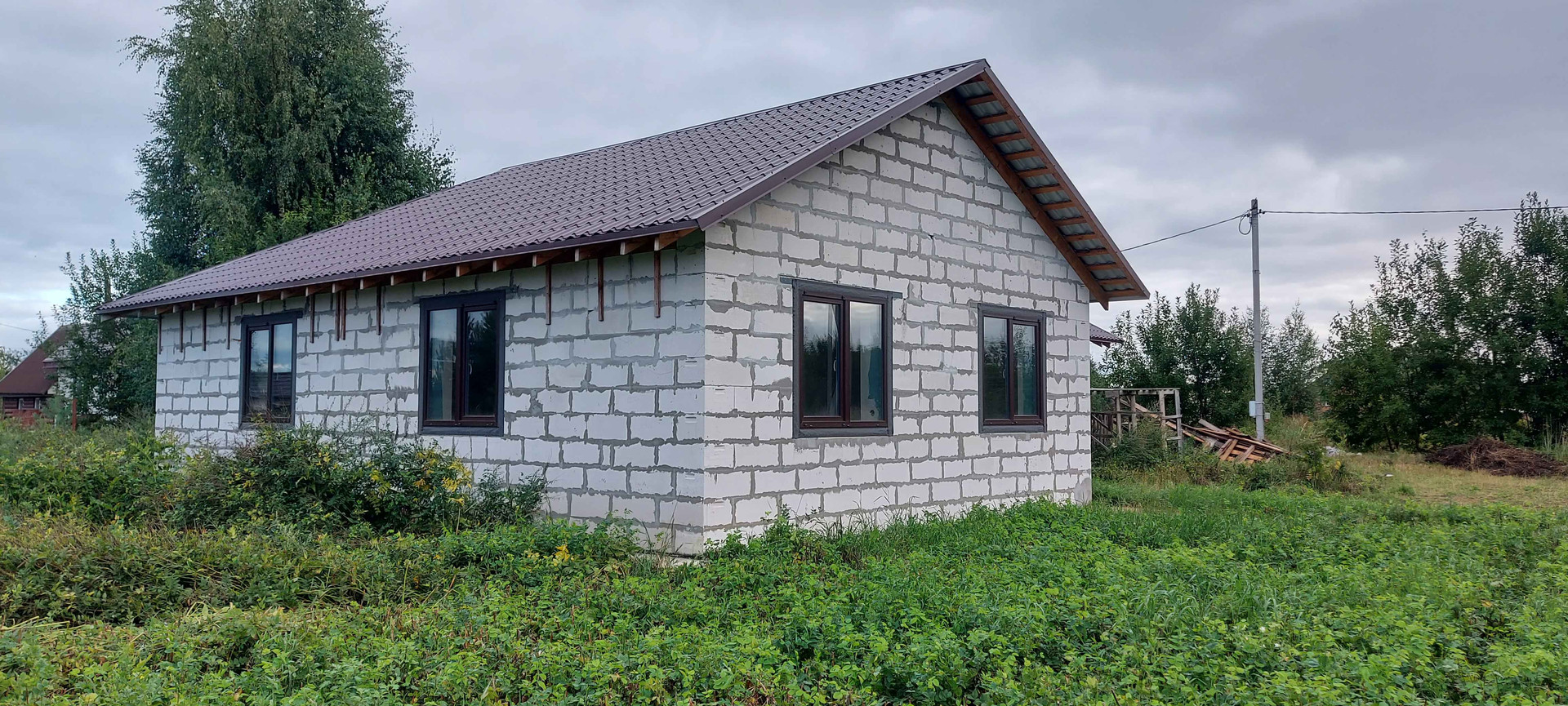 Дом общей площадью 123 м2, построен в 2021 году из газоблока (Н+Н D500, 375 газоблок), на участке 15 соток, участок квадратный ровный, высокий.
