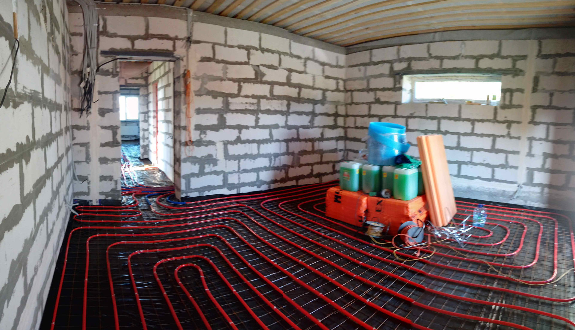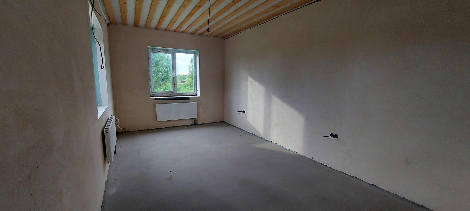 Электричество 15 кВт, 380 Вт. Сделана разводка под с/у. Отопление электрическое (два контура отопления,теплые водяные полы во всем доме + водяные радиаторы под каждое окно), отличный электрический котел "Коспил" (имеется договор и гарантии на теплые полы и котел). Утепление кровли выполнено на 80% (материал для утепления последней комнаты кухня-гостиная есть). Механизированная полусухая стяжка (выравниватель для полов не нужен, пол идеально ровный во всем доме). Двухкамерные энергосберегающие стеклопакеты из отличного профиля "KBE". Скважина 37 метров (имеется паспорт, договор и гарантии на скважину, фирма "Гидробурсервис"). Во всем доме разведено электричество и ЛВС (интернетный) кабель в каждую комнату, выведены розетки, три комнаты подготовлены зашпаклеваны и готовы под чистовую отделку. Сделана отмостка. На участке есть отличная бытовка. Деревня живая, соседи дружные проживают постоянно, дорога в самой деревни отличная, ровная. Автобусное сообщение с городом.