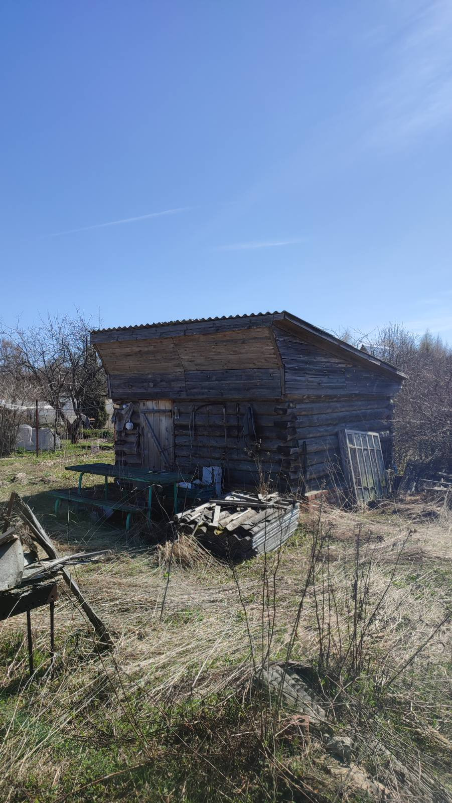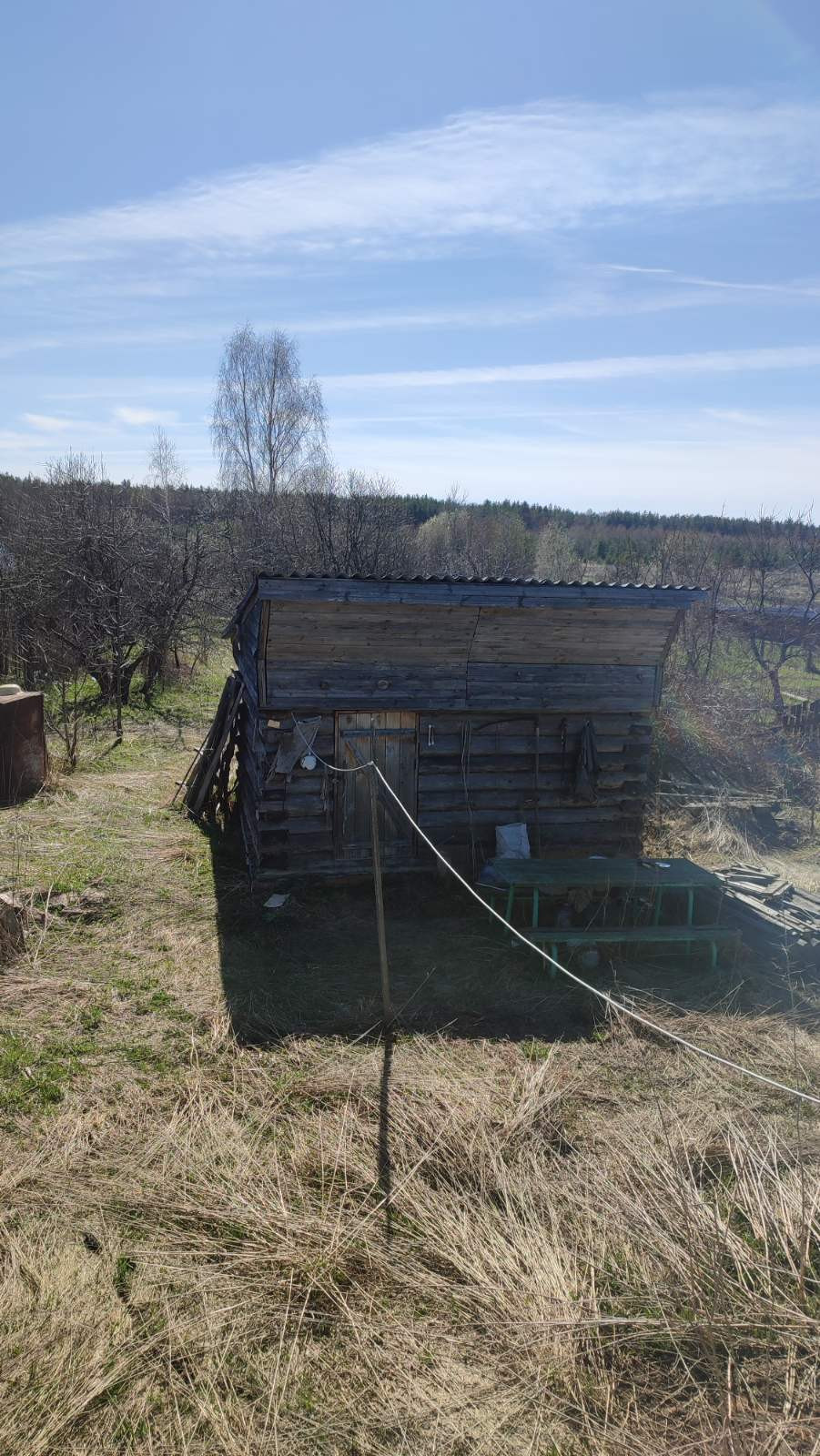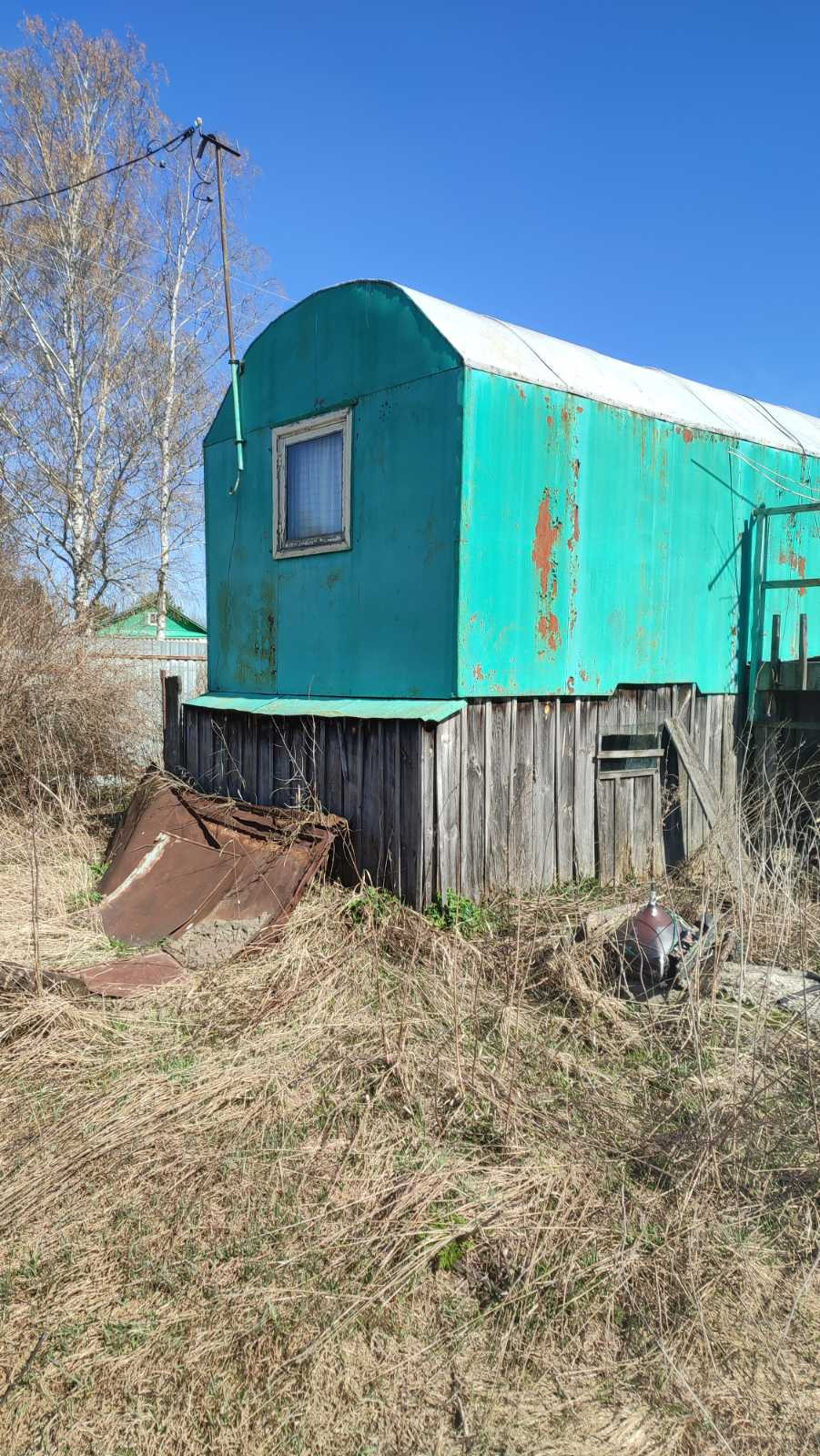 На участке жилой вагончик и сарай для хранения. Электричество подведено, есть счётчик. Газ в 30 метрах.