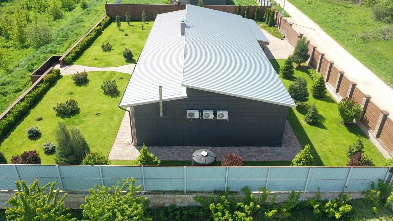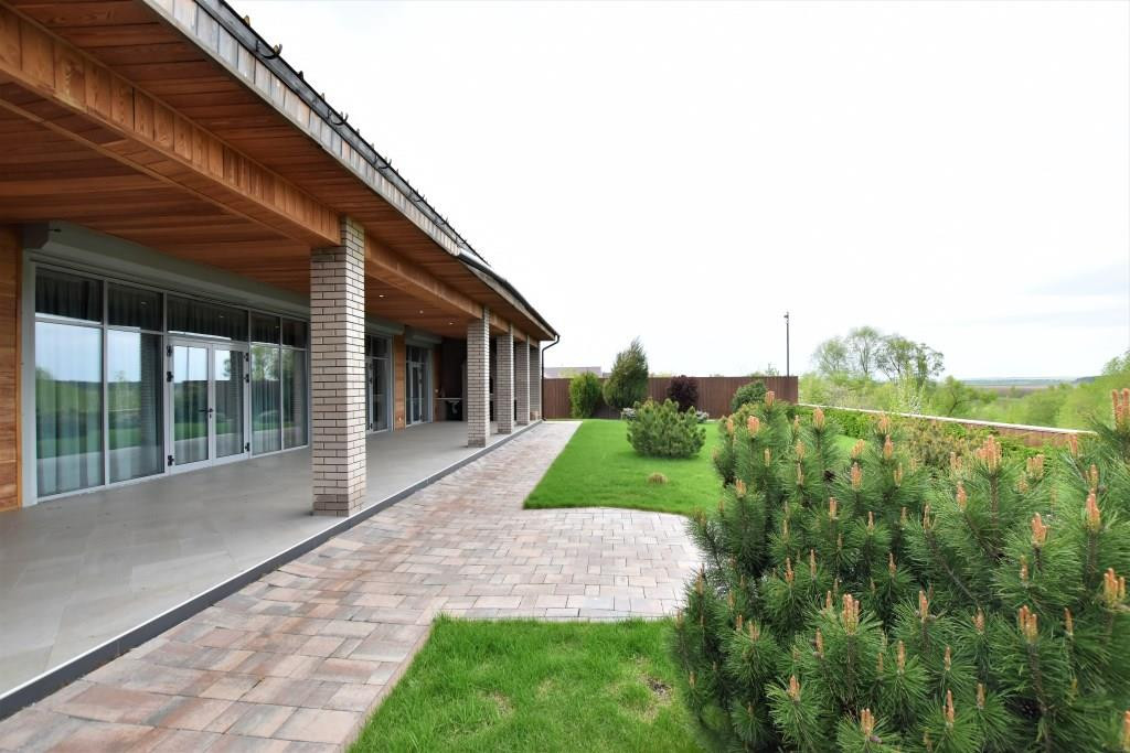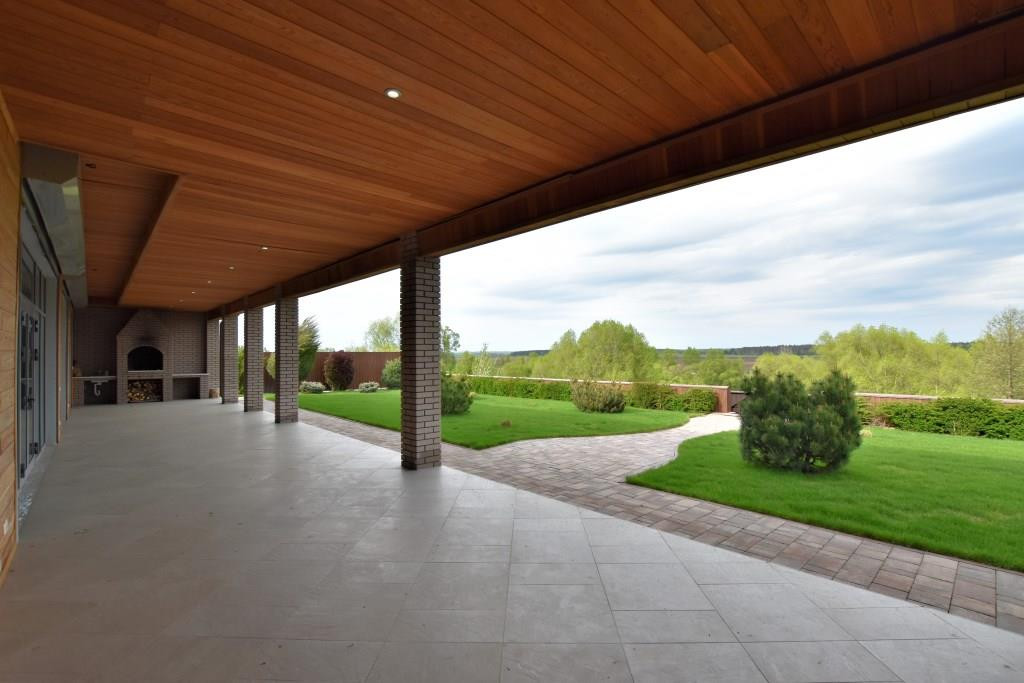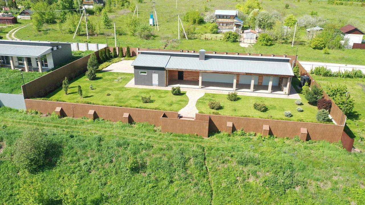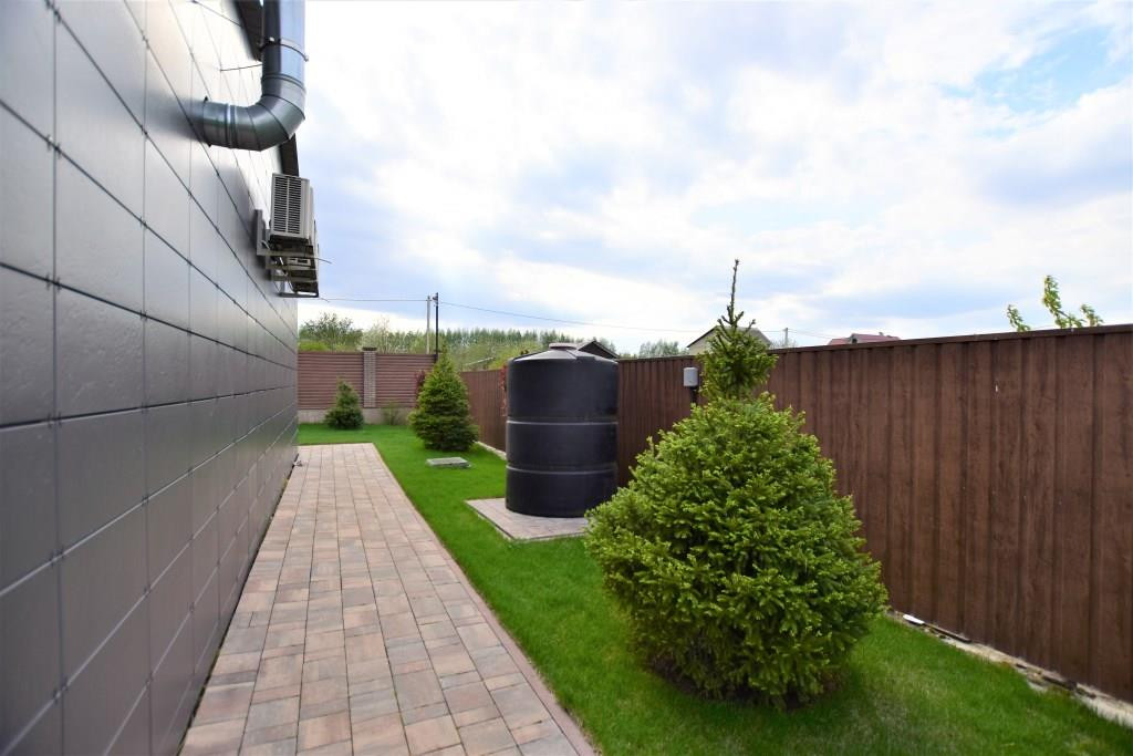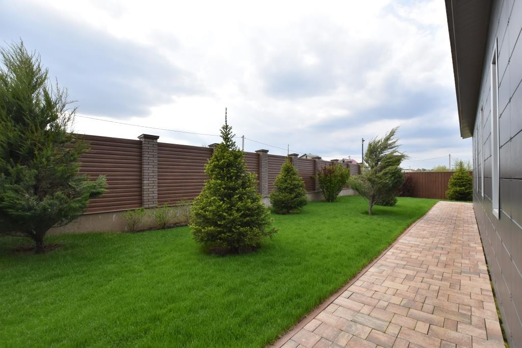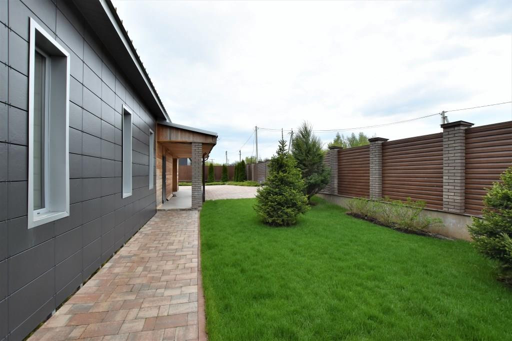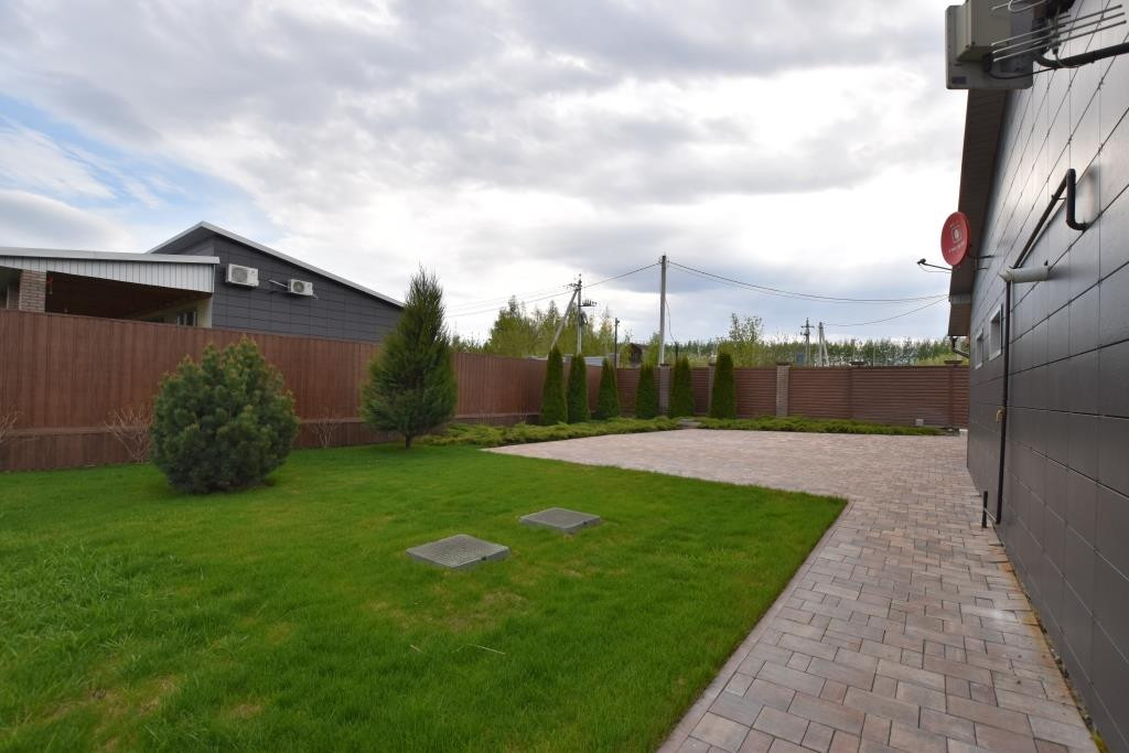 На территории выполнен ландшафтный дизайн, сделан автоматический полив, видеонаблюдение по периметру и сигнализация.