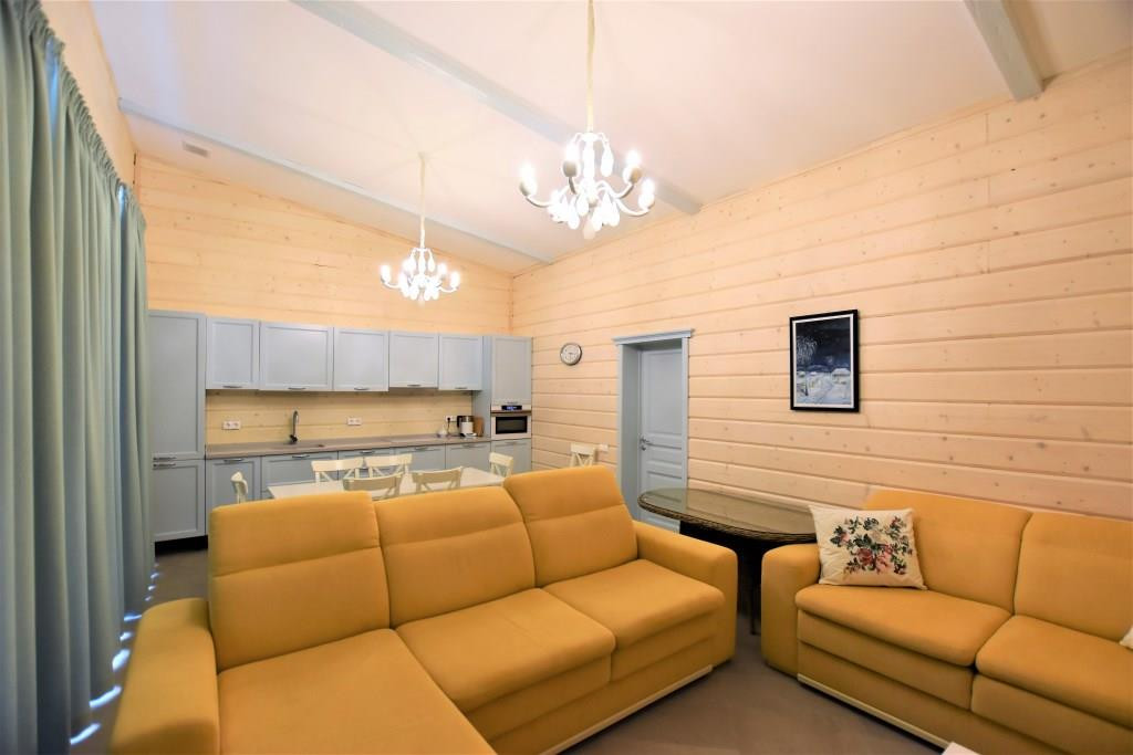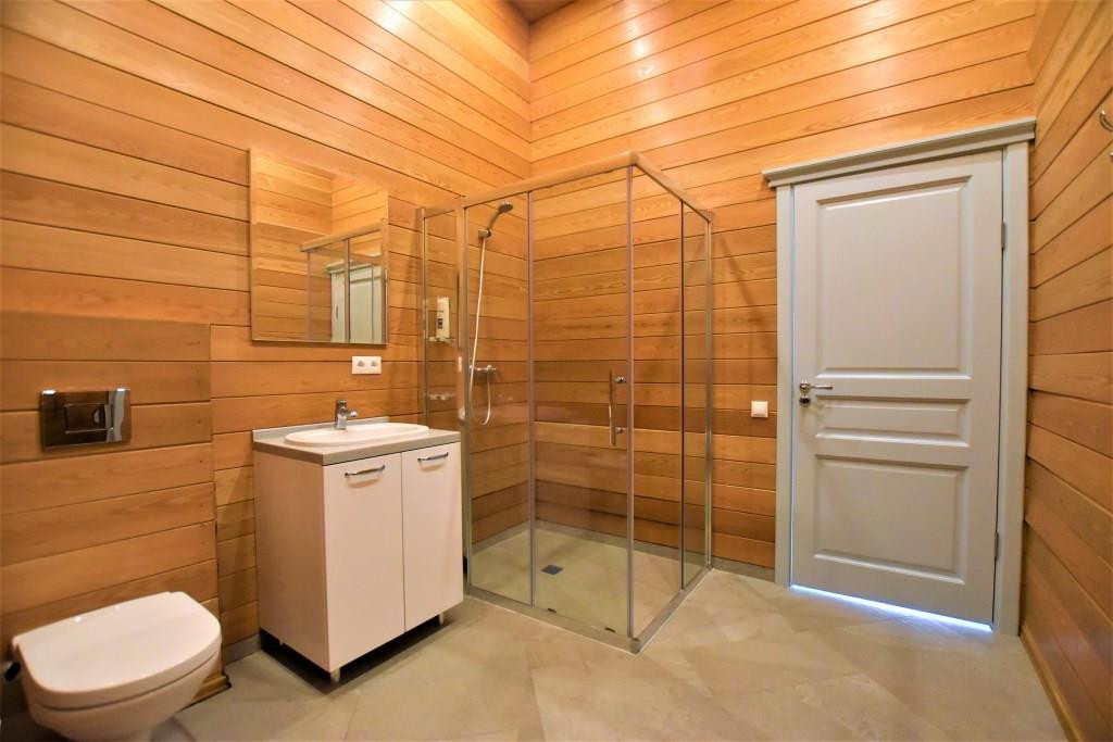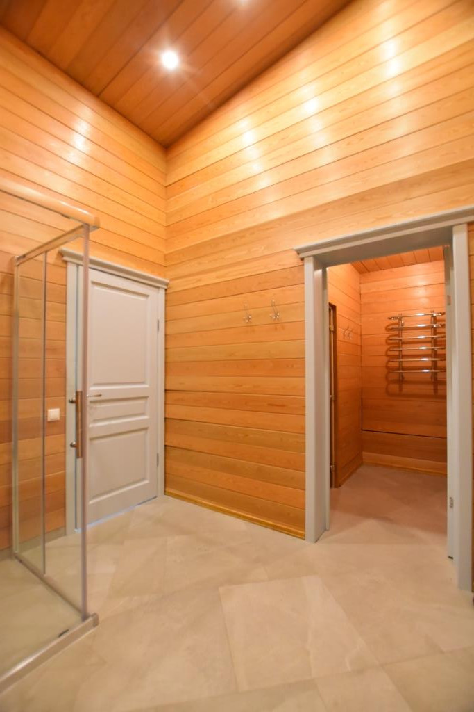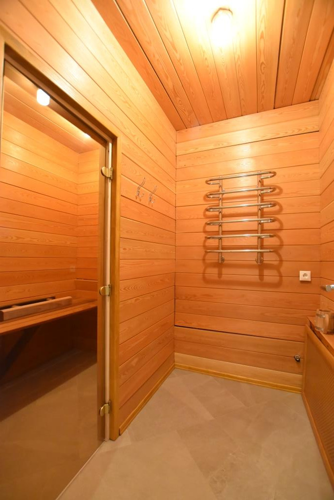 Во всем доме отделка – брус (ель), теплые полы (керамогранит), сауна – брус (кедр).