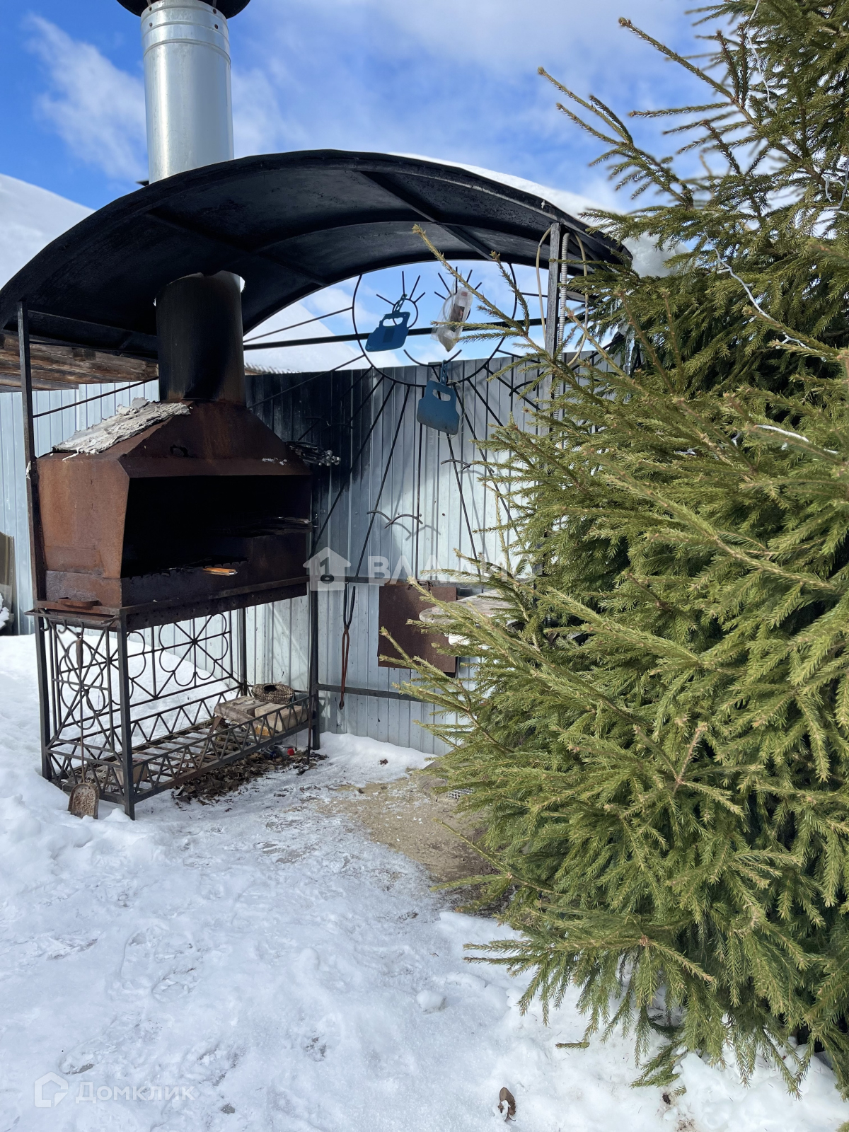 На территории участка разместились 2 беседки: рядом с мангальной зоной  и  с яблоневыми деревьями.  На участке так же растут другие плодовые кустарники и деревья. Из экзотики  представлены алыча 2-х сортов, виноград и даже уксусное дерево.  Украшают территорию хвойные деревья, голубые ели и туи., привезенные из Крыма. Изюминкой ландшафтного дизайна служат  два колодца, которые выполнены в стиле старинного деревянного зодчества.  На территории есть парник.                                Для парковки автомобилей выделена стоянка, которая может вместить 4 автомобиля и засыпана щебенкой.