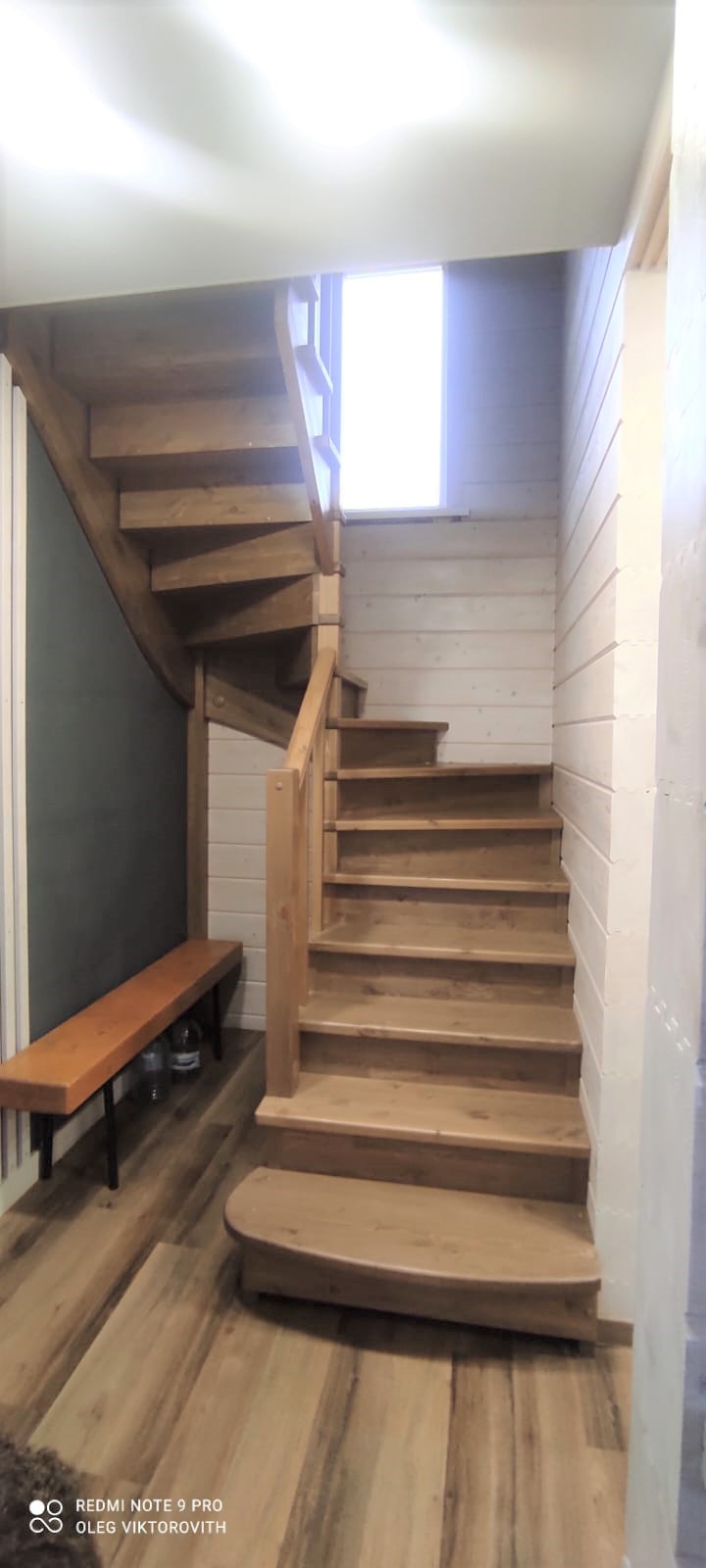 Деревянная лестница, стеклопакеты, металлические входные двери, полы ламинат