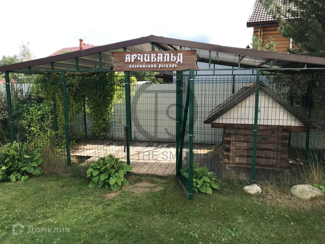 Участок ухоженный, на территории участка растут плодовые деревья и кустарники, есть теплица и вольер для собак. На участке также расположена баня из бревна (6х8м) под одной крышей с летней кухней из кирпича 40 кв.м. для приёма гостей.