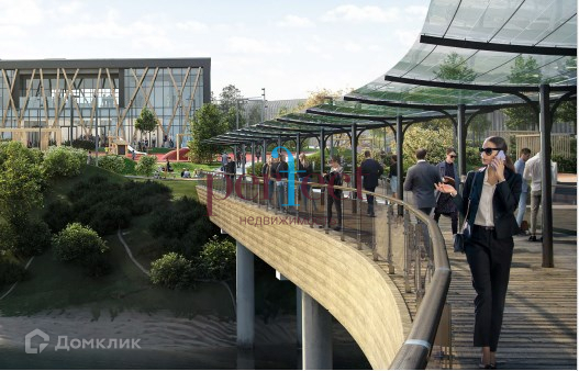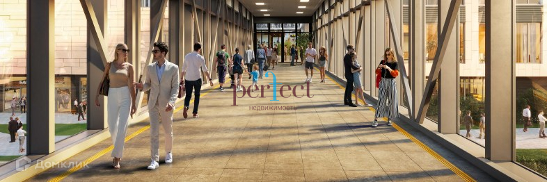 Территория между зданиями ⎯ это сквозной городской променад с торговой, сервисной и культурноразвлекательной инфраструктурой