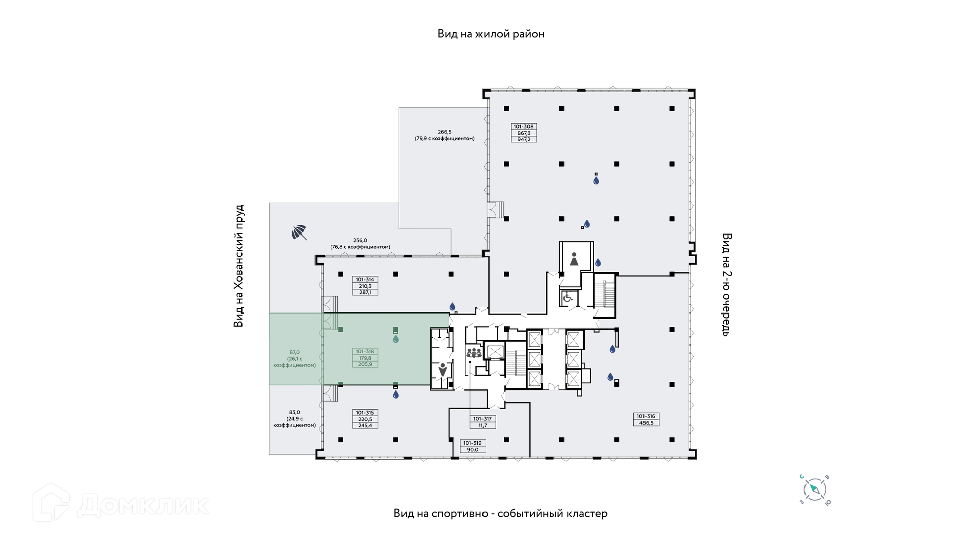 - Лобби с постаматами – 4 тыс. м2