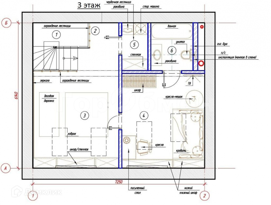 3 эт. Изолированная детская комната с полноценной ванной комнатой и общая проходная комната (второй свет).