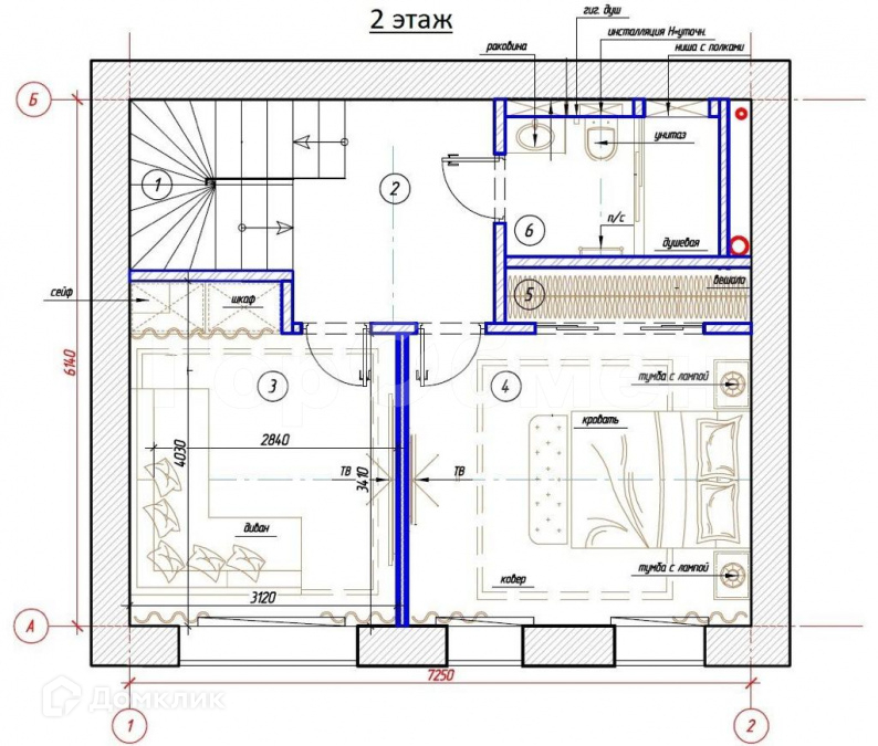 2 эт. Спальня и отдельная  комната под кинотеатр. с/у + душевая