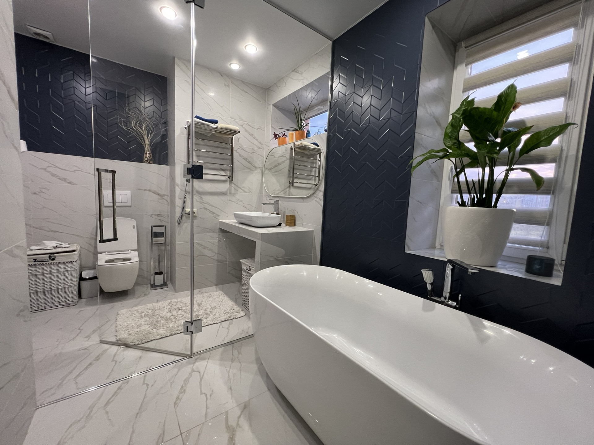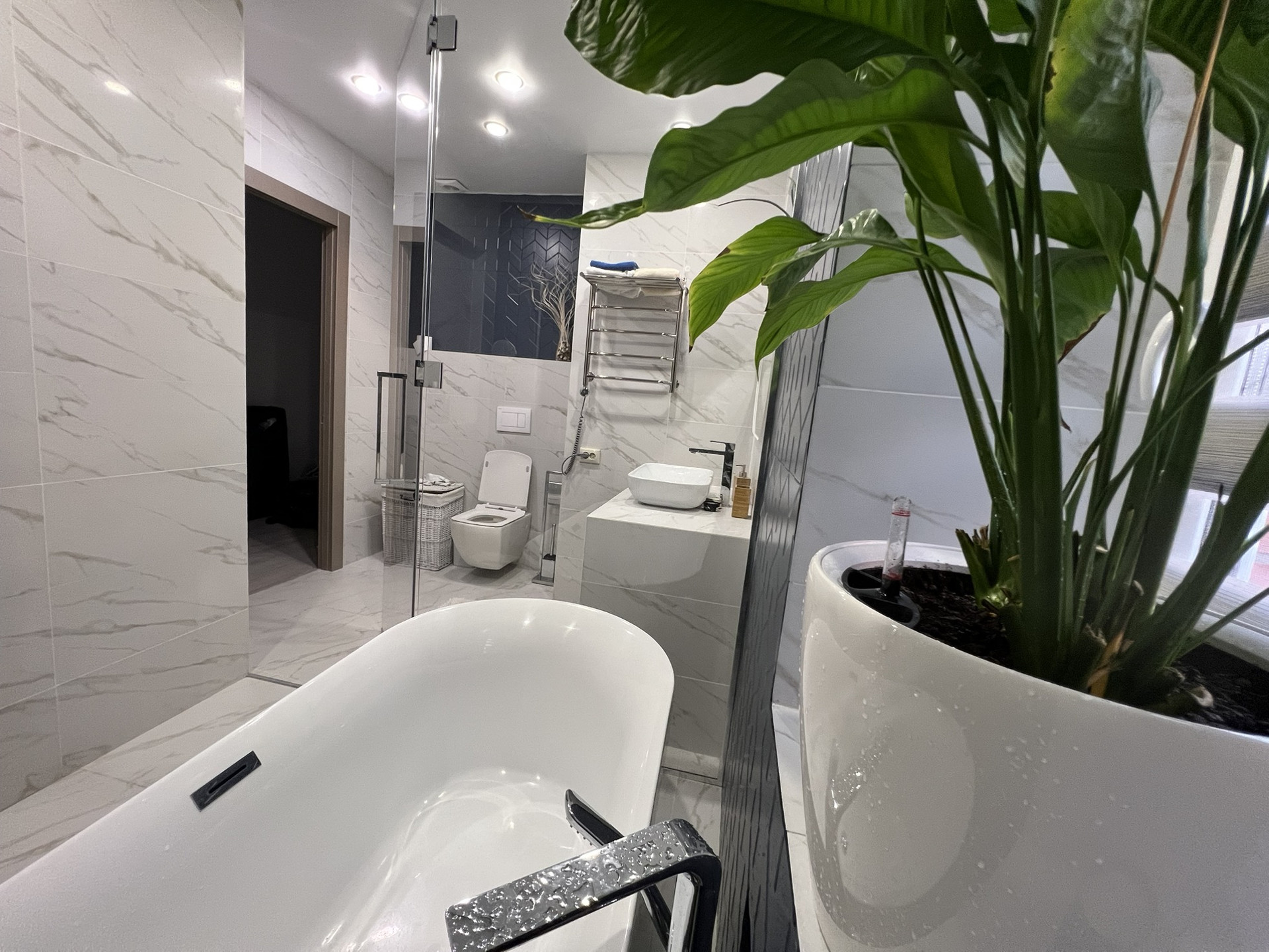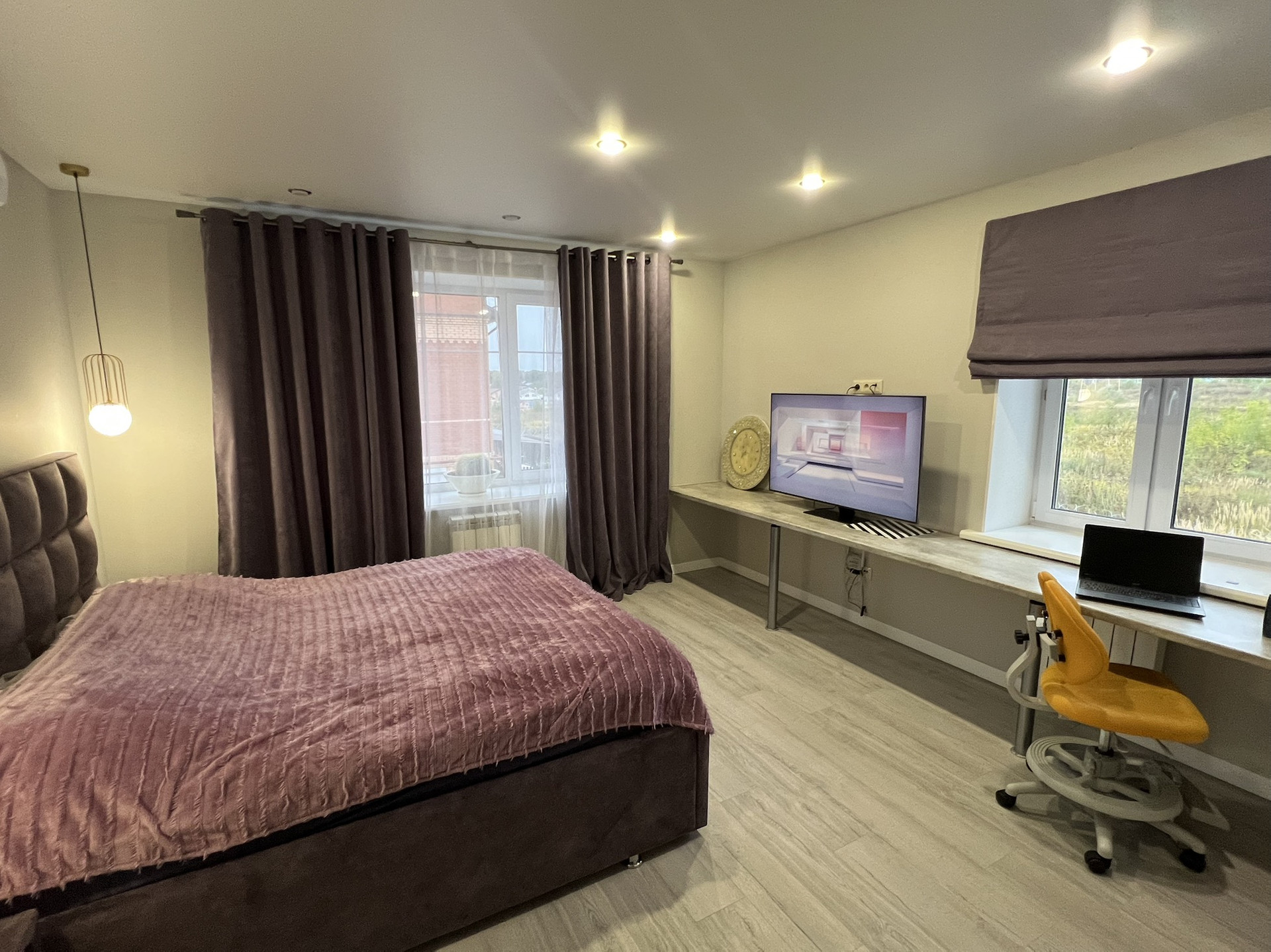 2 этаж - хозяйская спальня, хозяйская ванная комната (около 8,5 кв.м) с душем и отдельно стоящей ванной, гардеробная комната объединенная с постирочной.