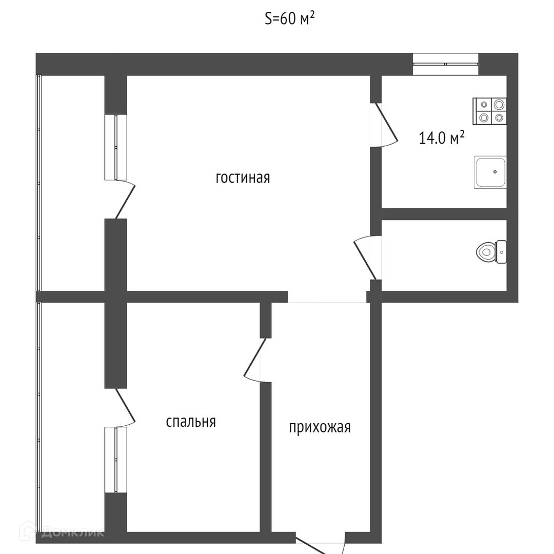 Общая площадь 60 м2
