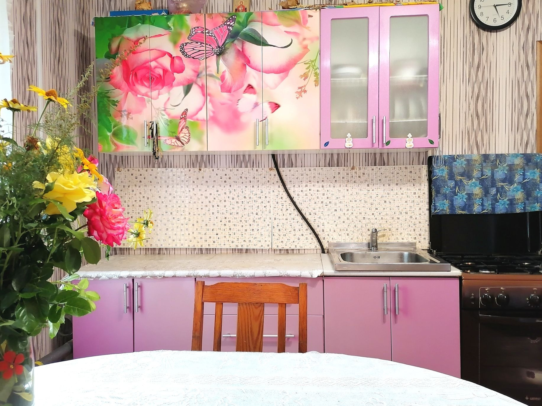 В доме центральное водоснабжение, газ, колонка, двухконкуртный котёл. Санузел совмешенный, тоже в доме, полностью в плитке.