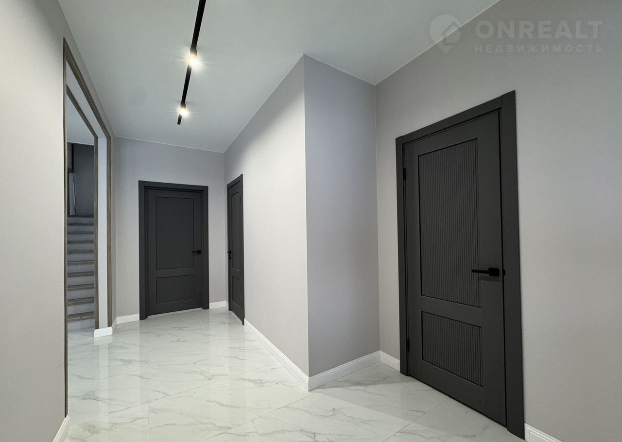 Отделка: фасад - плитка НАUВЕRК / имитация бруса; Террасная доска; полы керамогранит / ламинат; межкомнатные двери с черной, матовой фурнитурой; натяжной потолок белый, матовый; обои, имитация бруса.