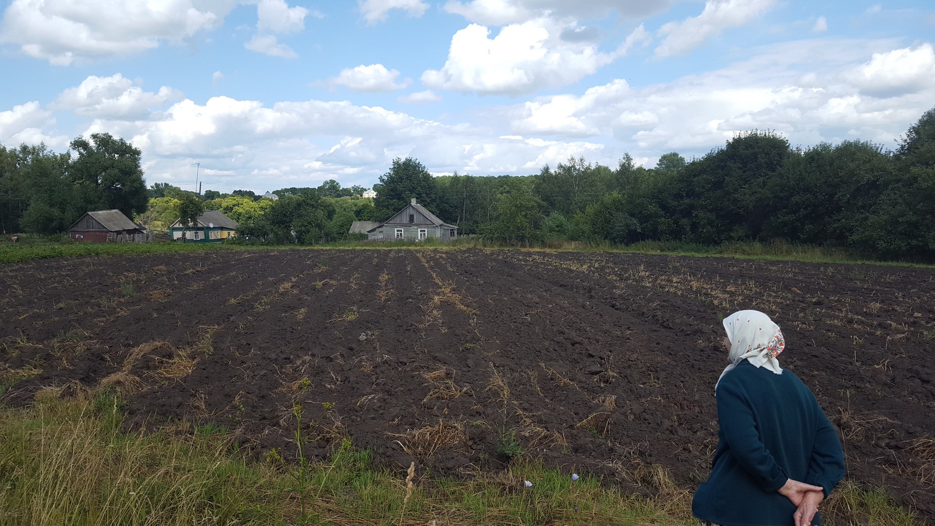 Огород .Дорога грунтовка, переходящая в асфальтированную .Школа, магазин, есть ж/д станция Малоархангельск(10км)