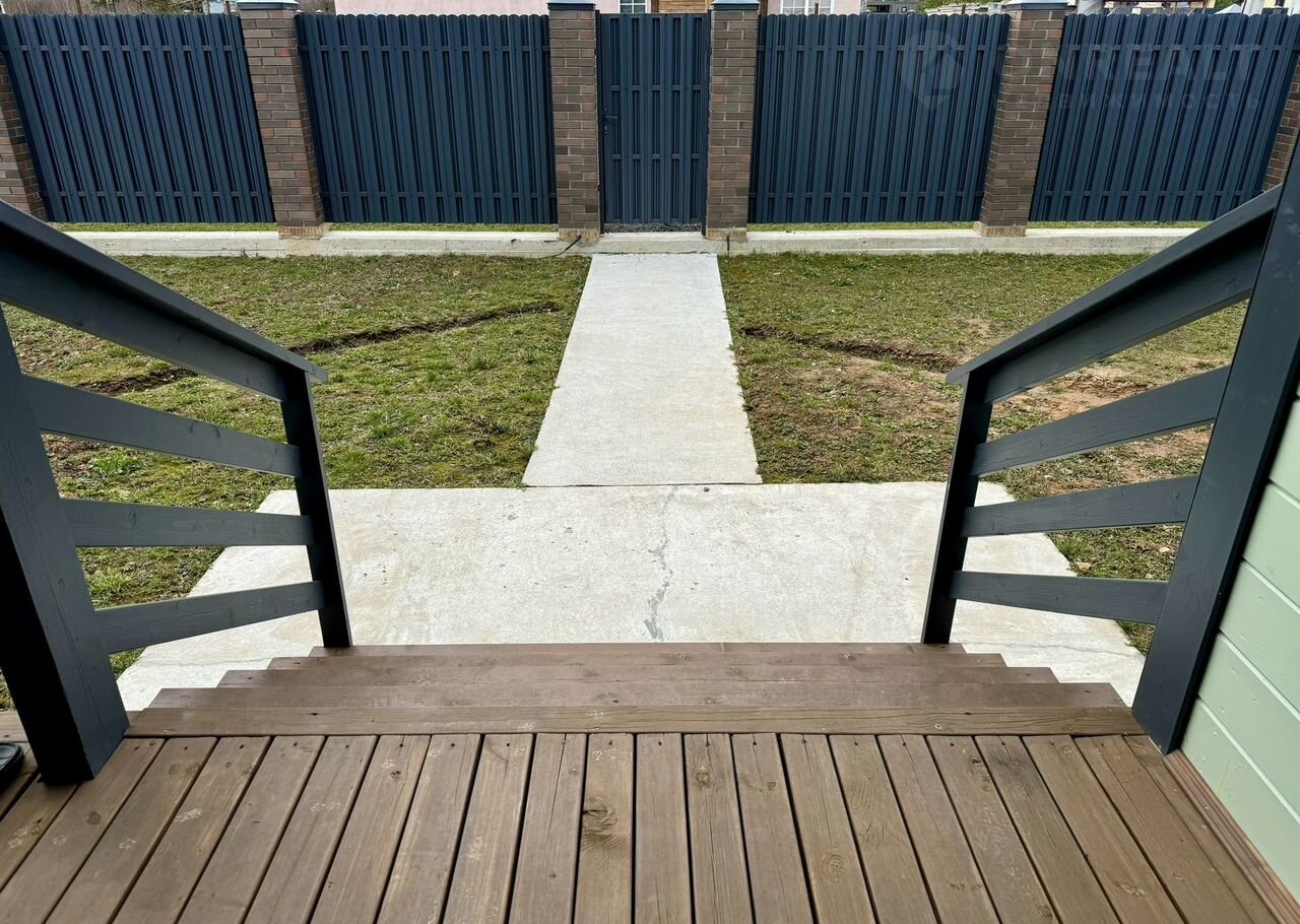 Участок в 10 соток имеет правильную прямоугольную форму и идеально подходит для различных типов ландшафтного оформления. Он огорожен надежным забором и дополнен отмостками (высота 10 см) и удобным парковочным местом (также залито бетоном) общей высотой 15 см.