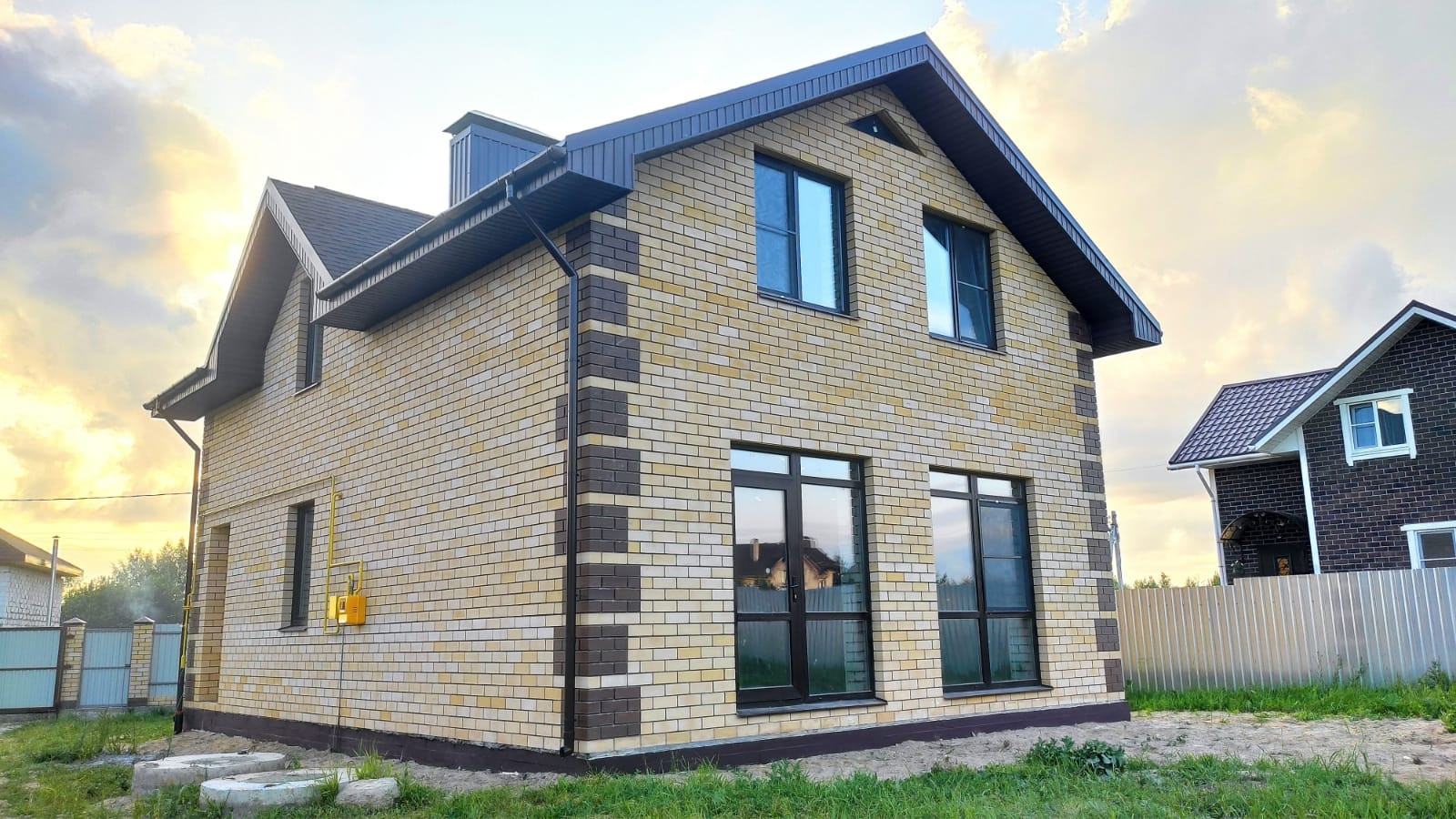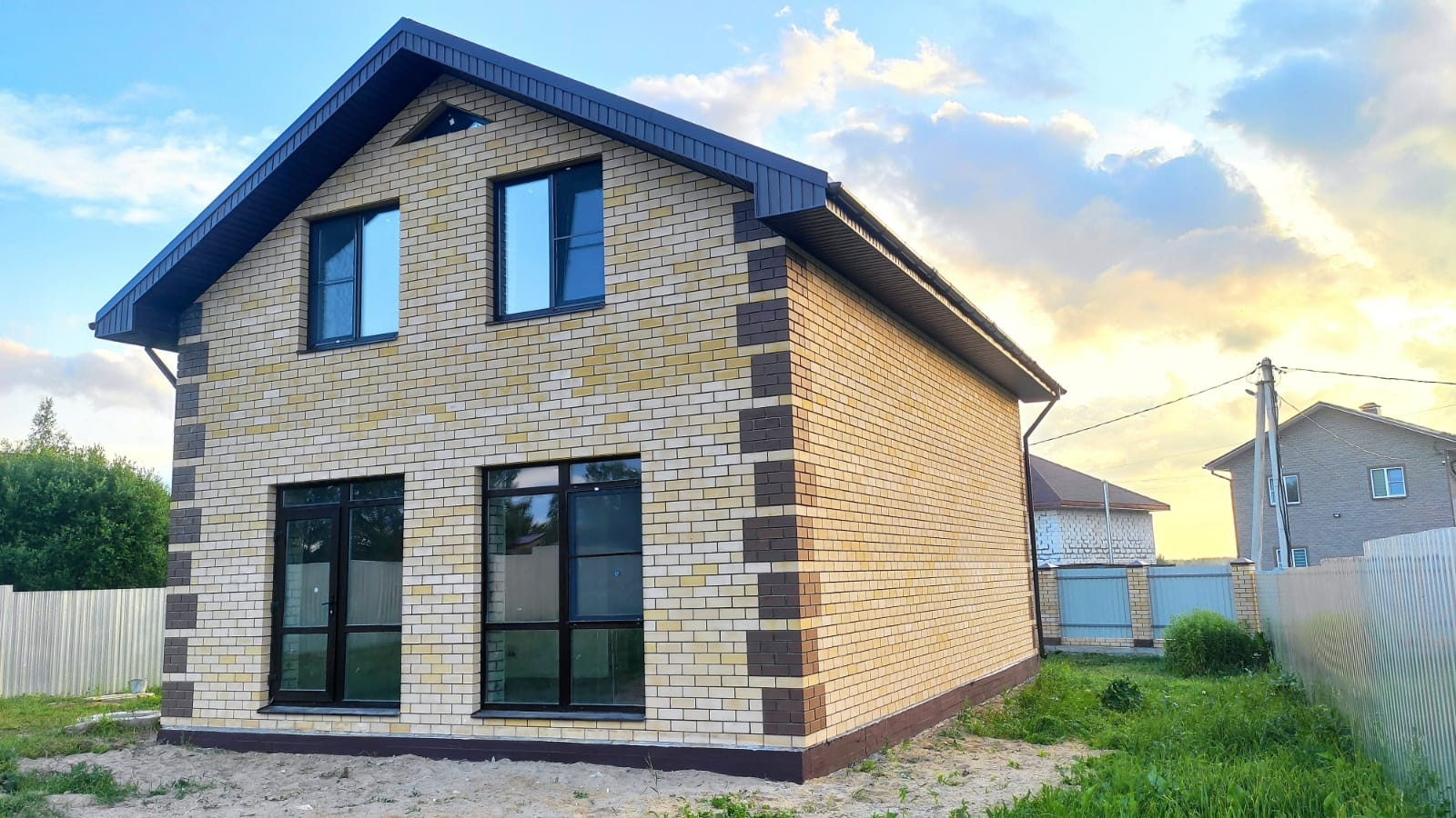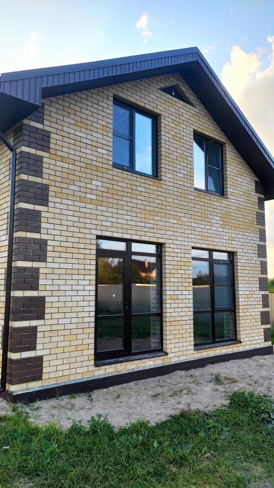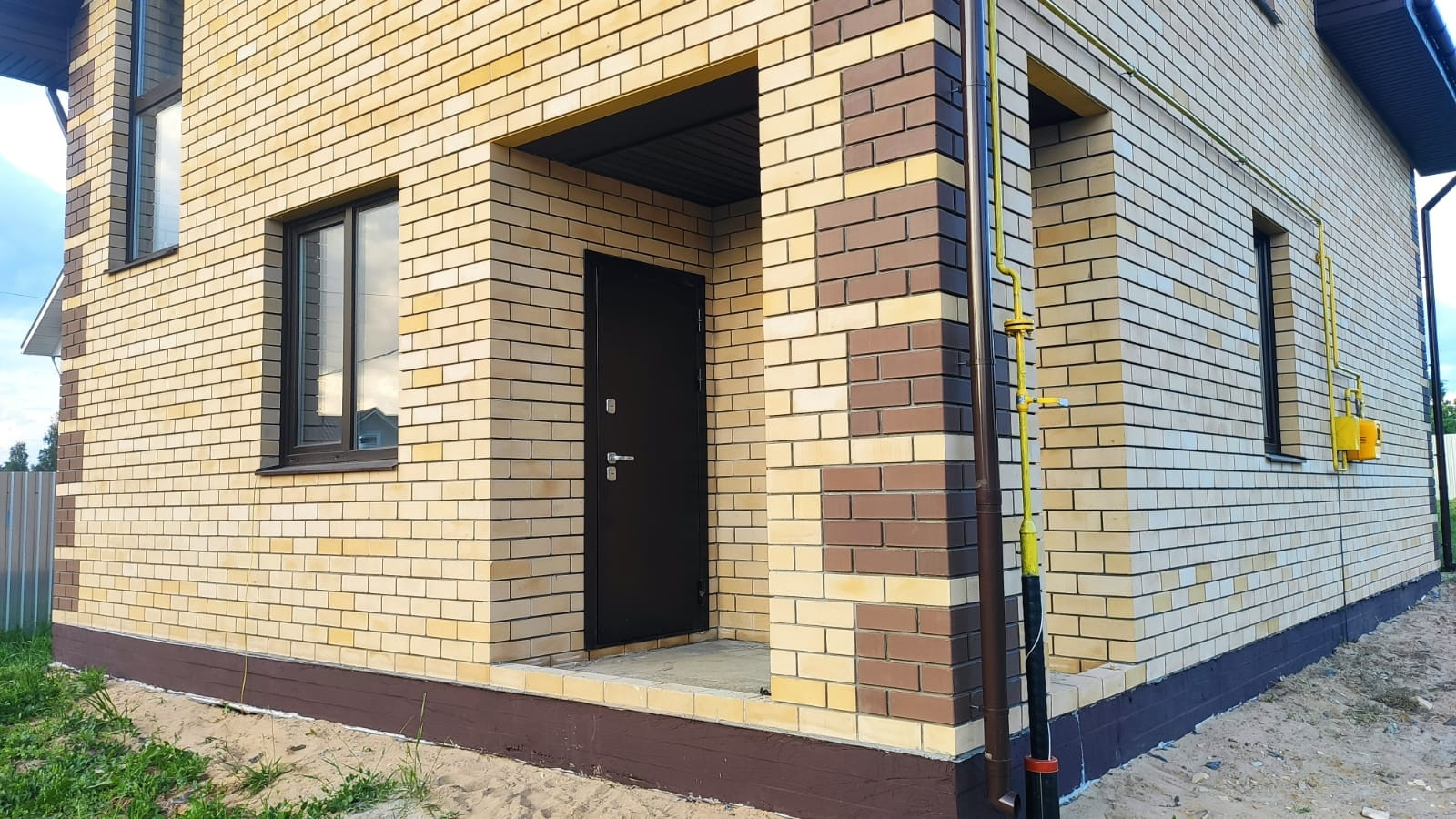 Оконный профиль фирма Melke 70 мм+ москитные сетки, двухкамерный энергосберегающий стеклопакет. Стены из Силикатного кирпича толщиной 570 мм кирпич силикатный ,утеплитель Пеноплекс 50 мм и облицовка из кирпича. Внутренние перегородки из силикатного кирпича толщиной 120 мм.