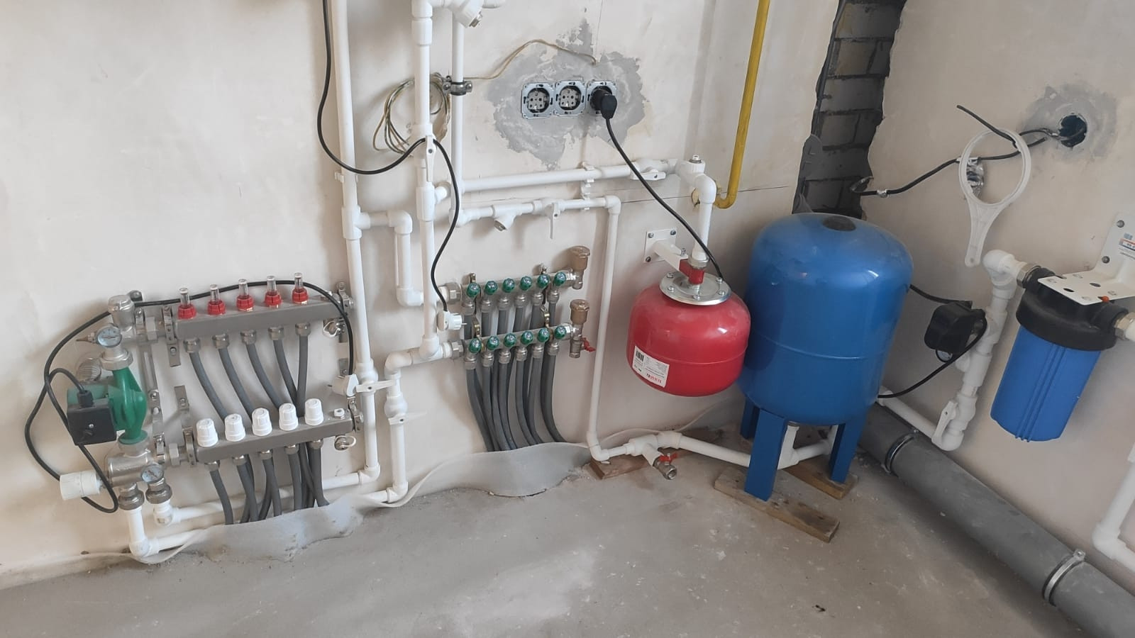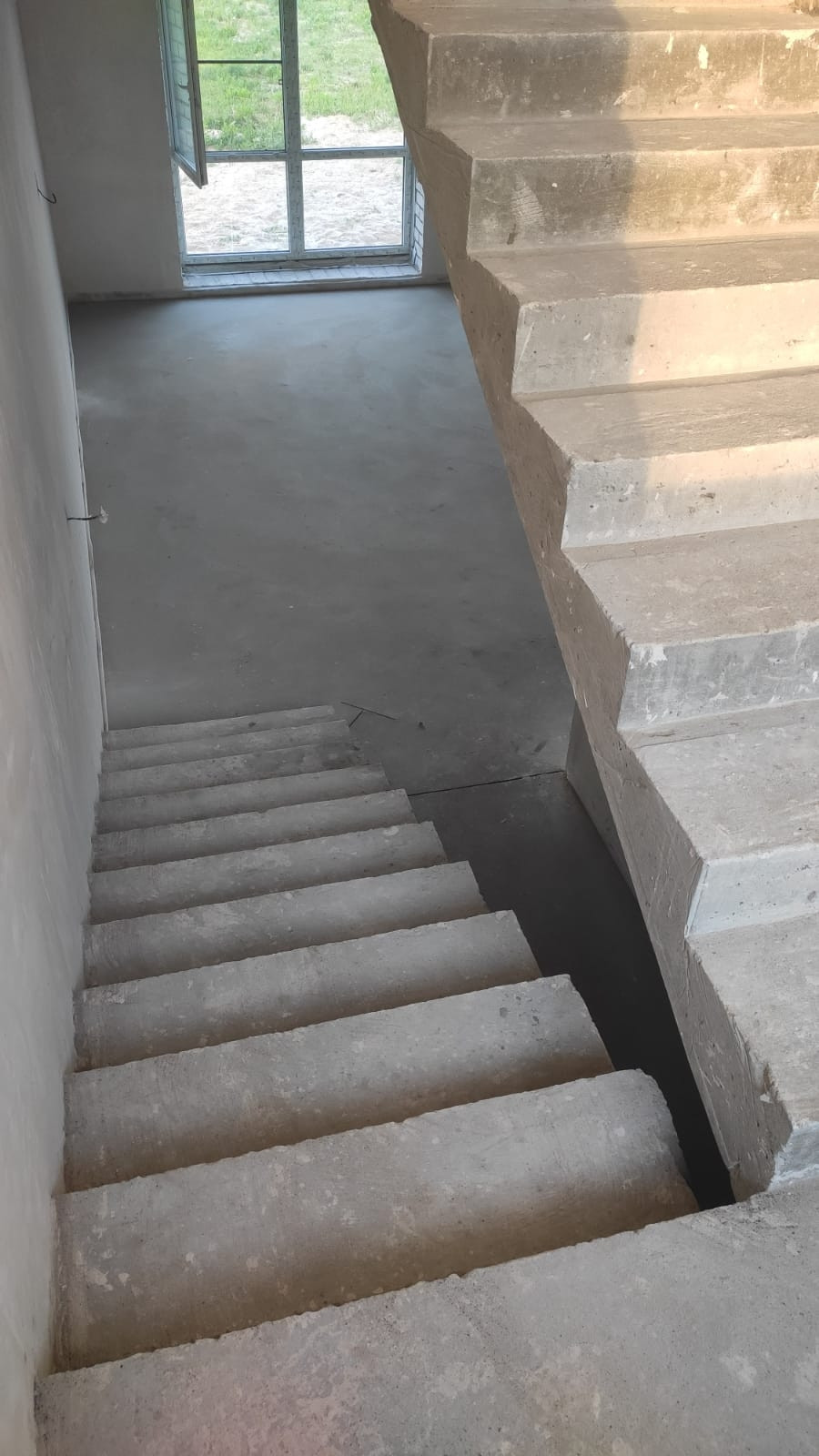 Выполнена полусухая стяжка полов на первом и втором этаже.
