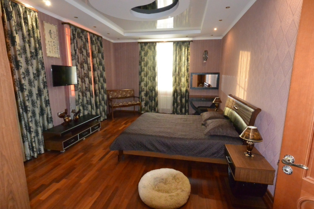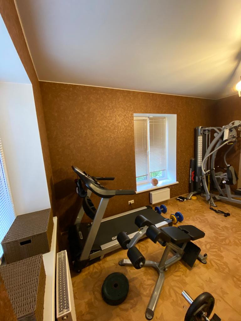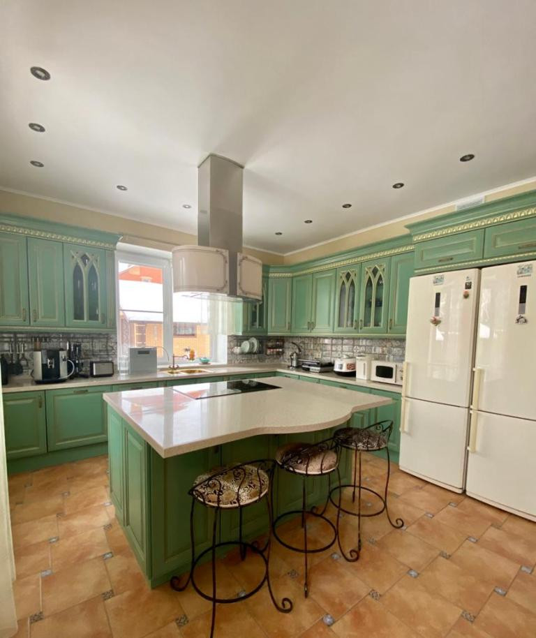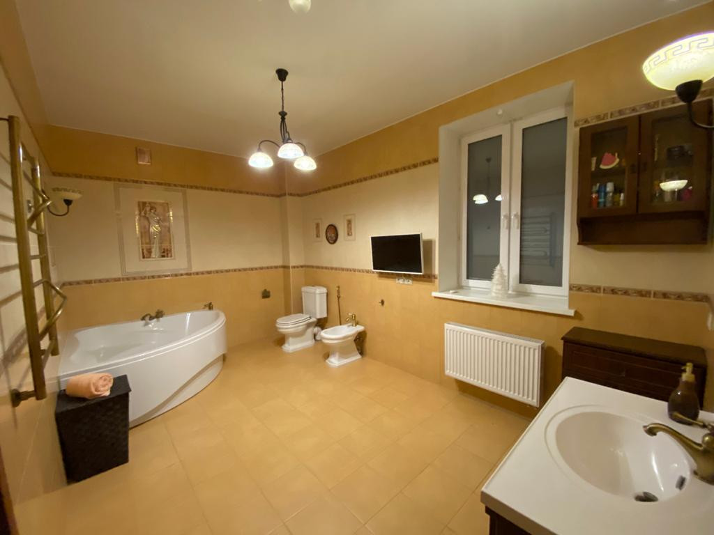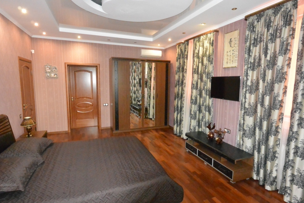 В доме три этажа: 1 этаж – прихожая, зал 85 кв.м. с панорамным остеклением со вторым светом - высота потолка 6.5м., кухня 25 кв.м., с\у, спорт зал, кабинет, гардеробная, котельная. Подогрев полов всего этажа. 2 этаж - 4 спальни, хозяйская 25 кв.м. со своим сан. узлом. холл, с/у 15 кв.м. с большой ванной, гардеробная. Подогрев полов в 2-х сан. узлах и холле. 3 этаж – домашний кинотеатр - бильярдная, комната отдыха, кальянная, гардеробная, подсобное помещение.