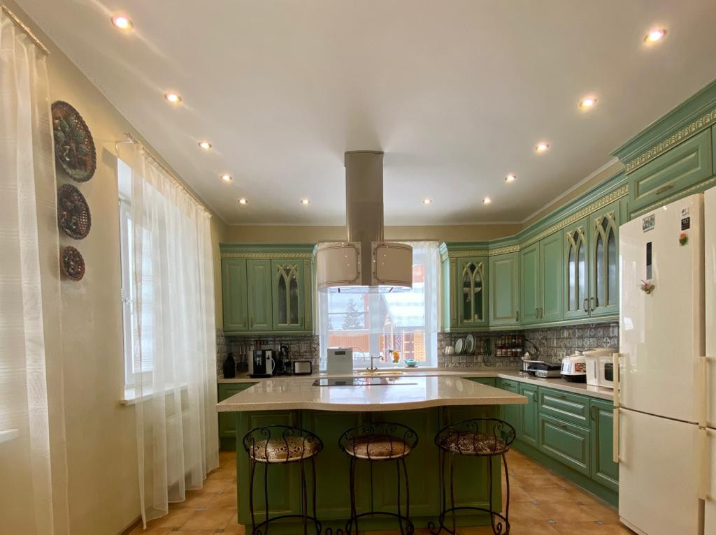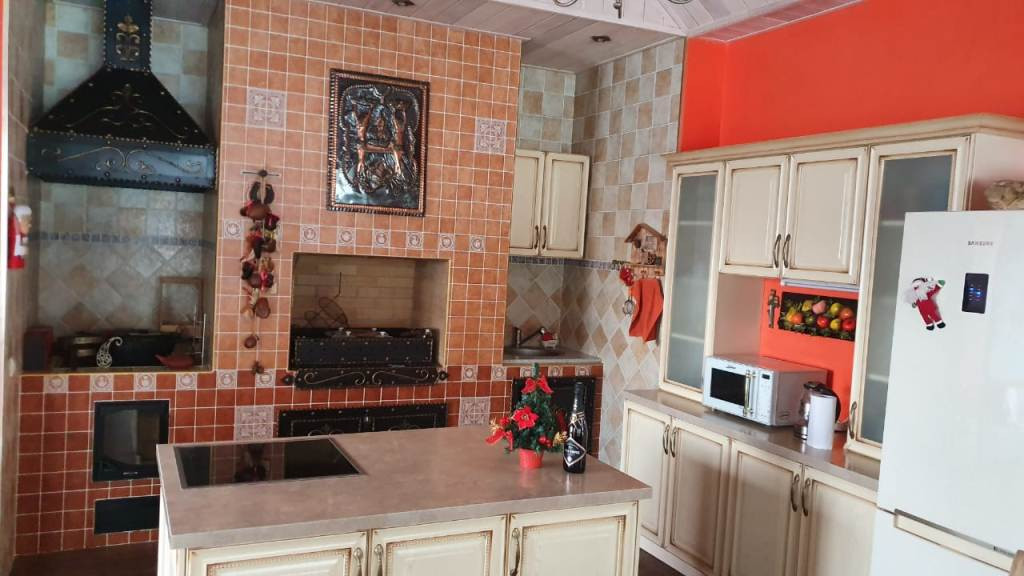 Участок и дом стоят на сигнализации, договор с вневедомственной охраной. Система видеонаблюдения без слепых зон с датчиками движения. Дом кирпичный на монолитном фундаменте, крыша металлочерепица. Хороший дорогой ремонт, теплые полы, кондиционеры. Отопление в основном доме и доме отдыха отдельное, газовое. Дом рядом с храмом. Забор из двух слоев профнастила 4 метра на фундаменте по периметру. Въездная группа облицована диким камнем. Автоматические ворота, охрана.