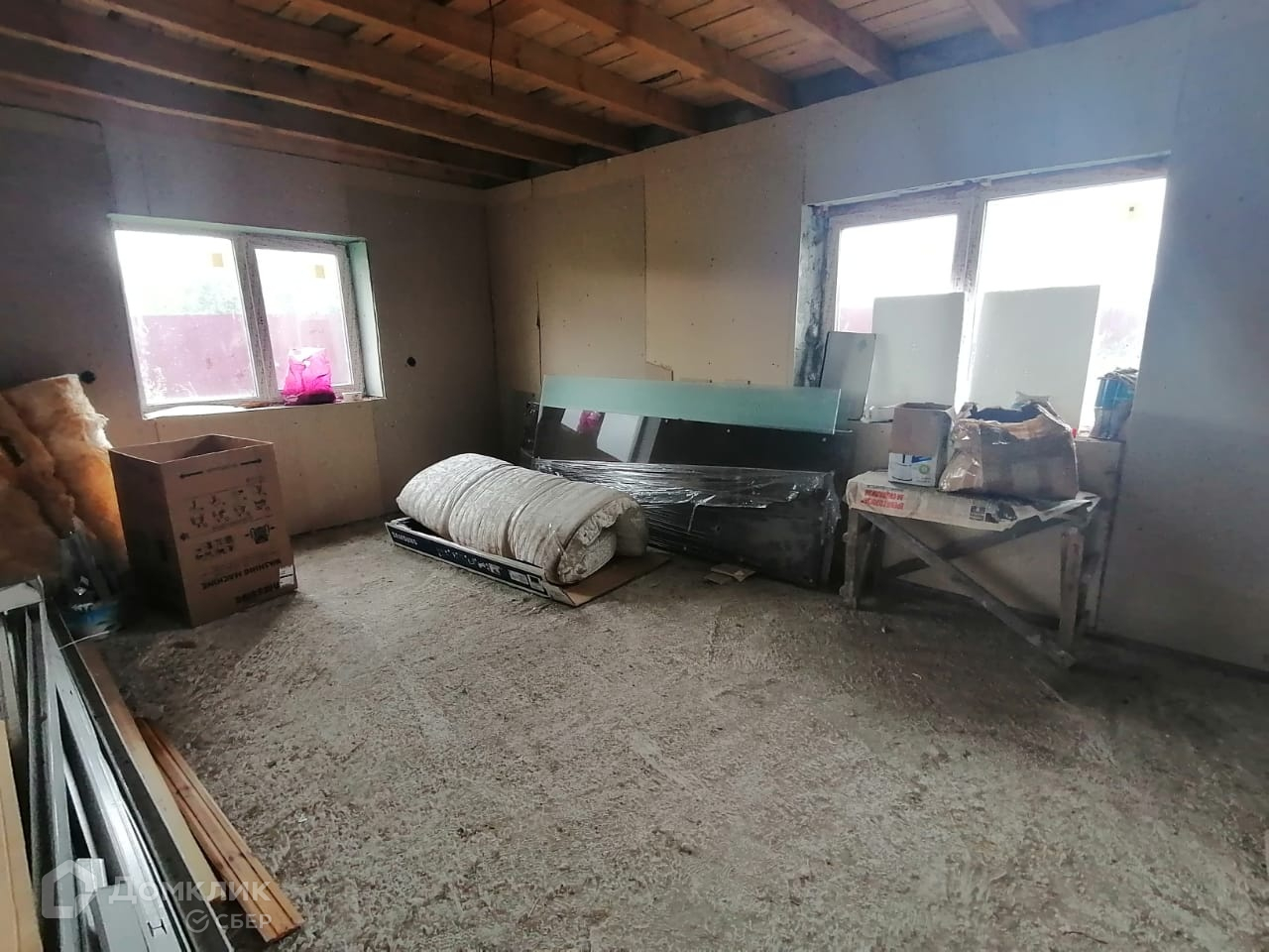 Во многих комнатах выполнена предчистовая отделка, выведены розетки. Дом не оформлен. При оформлении возможна прописка. Многие соседи живут круглогодично.