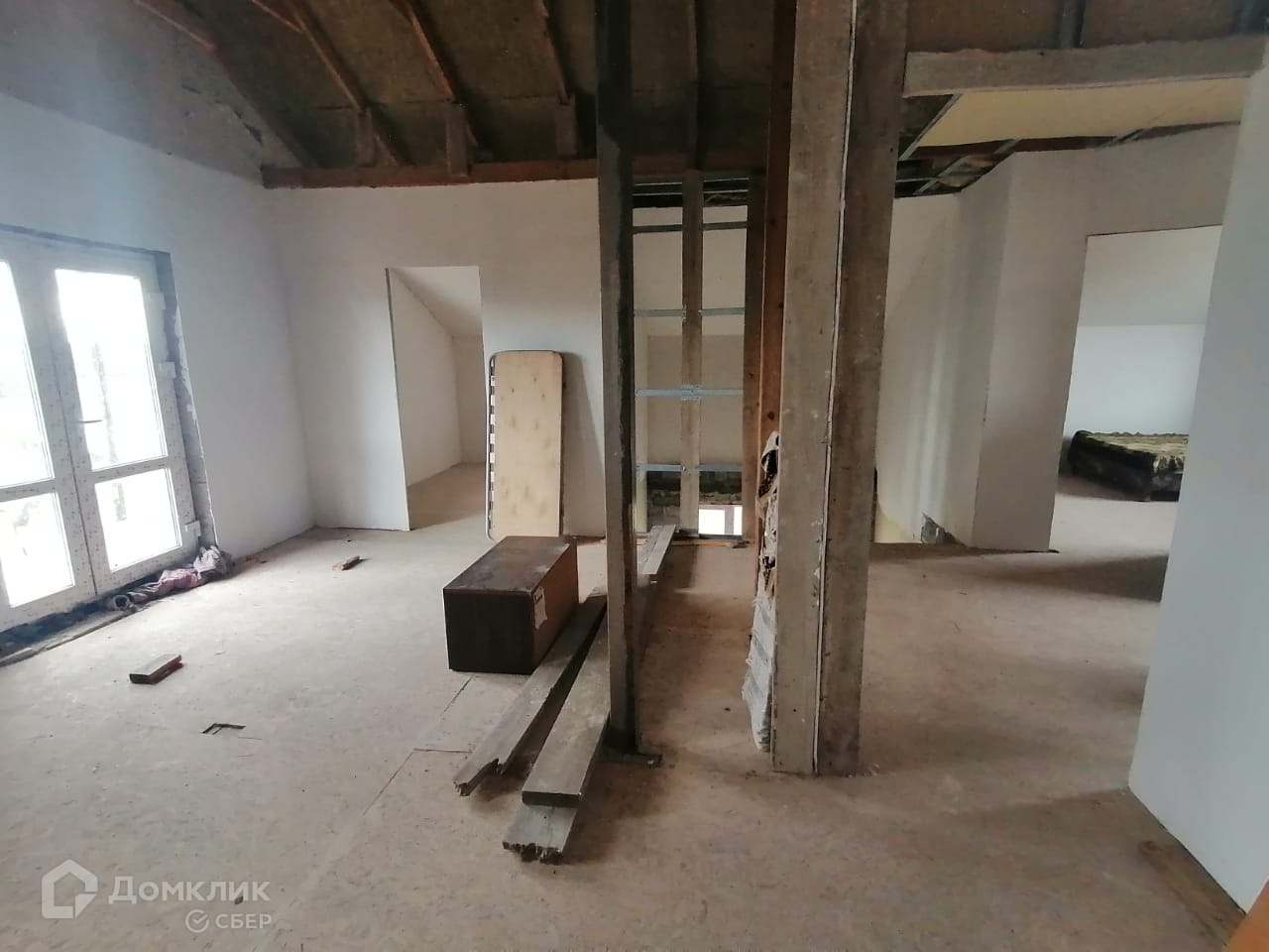 На первом этаже кухня-гостиная, 2 спальни, помещение под сан.узел. На втором - четыре просторные комнаты.