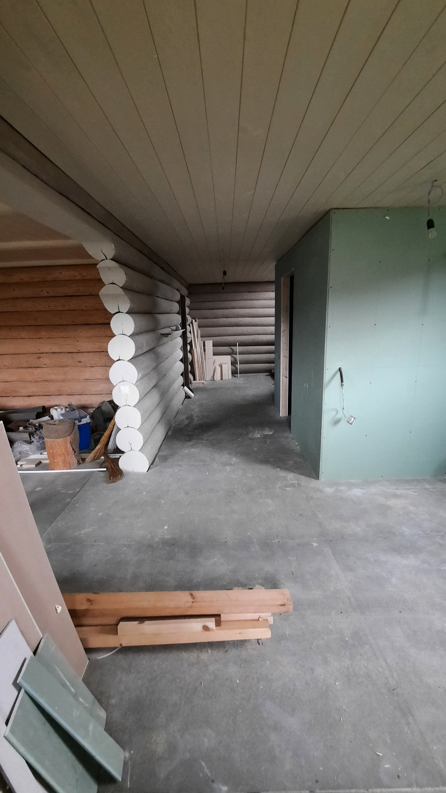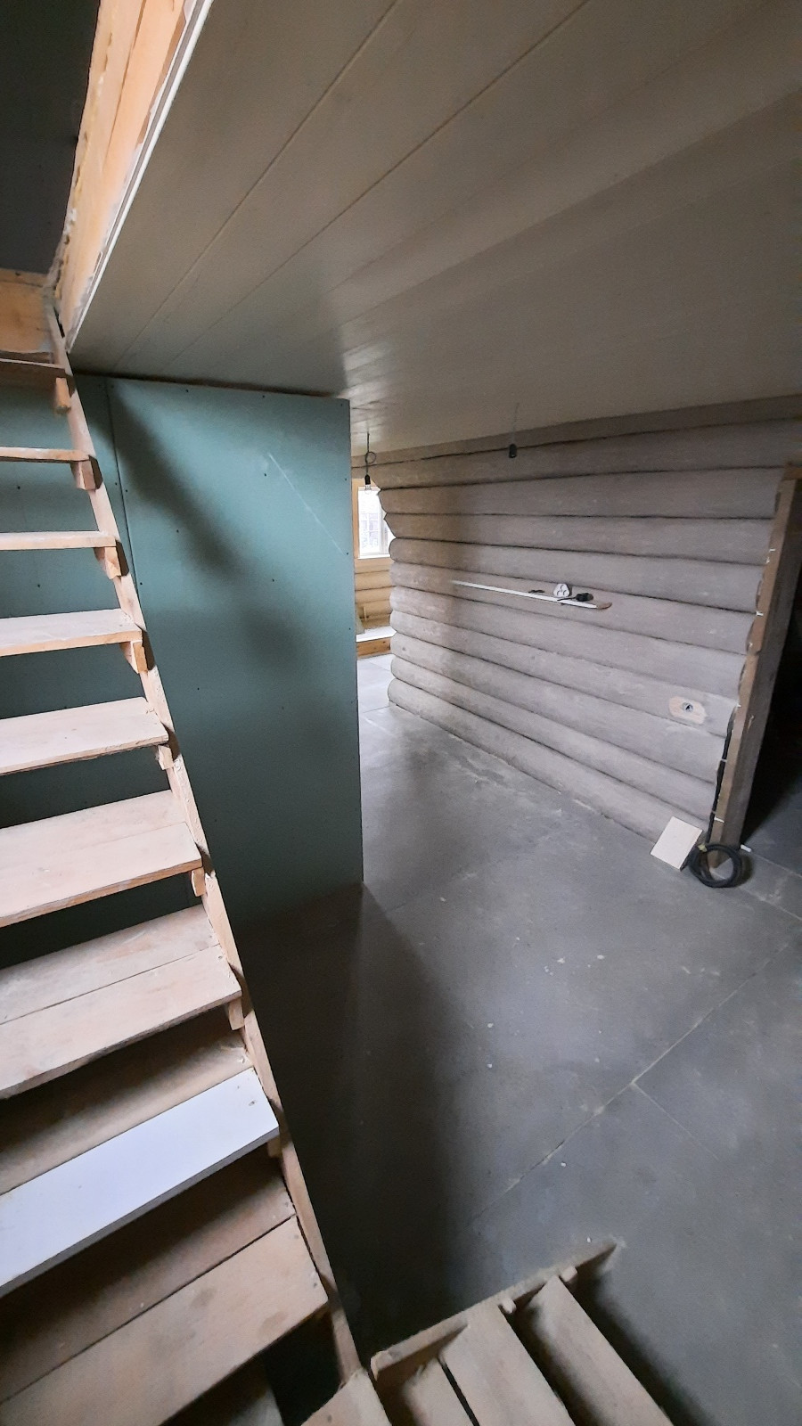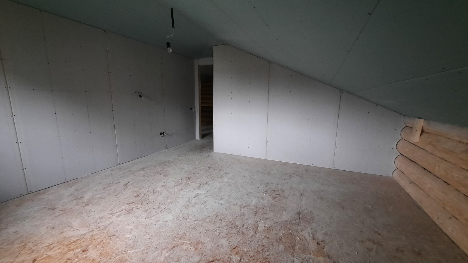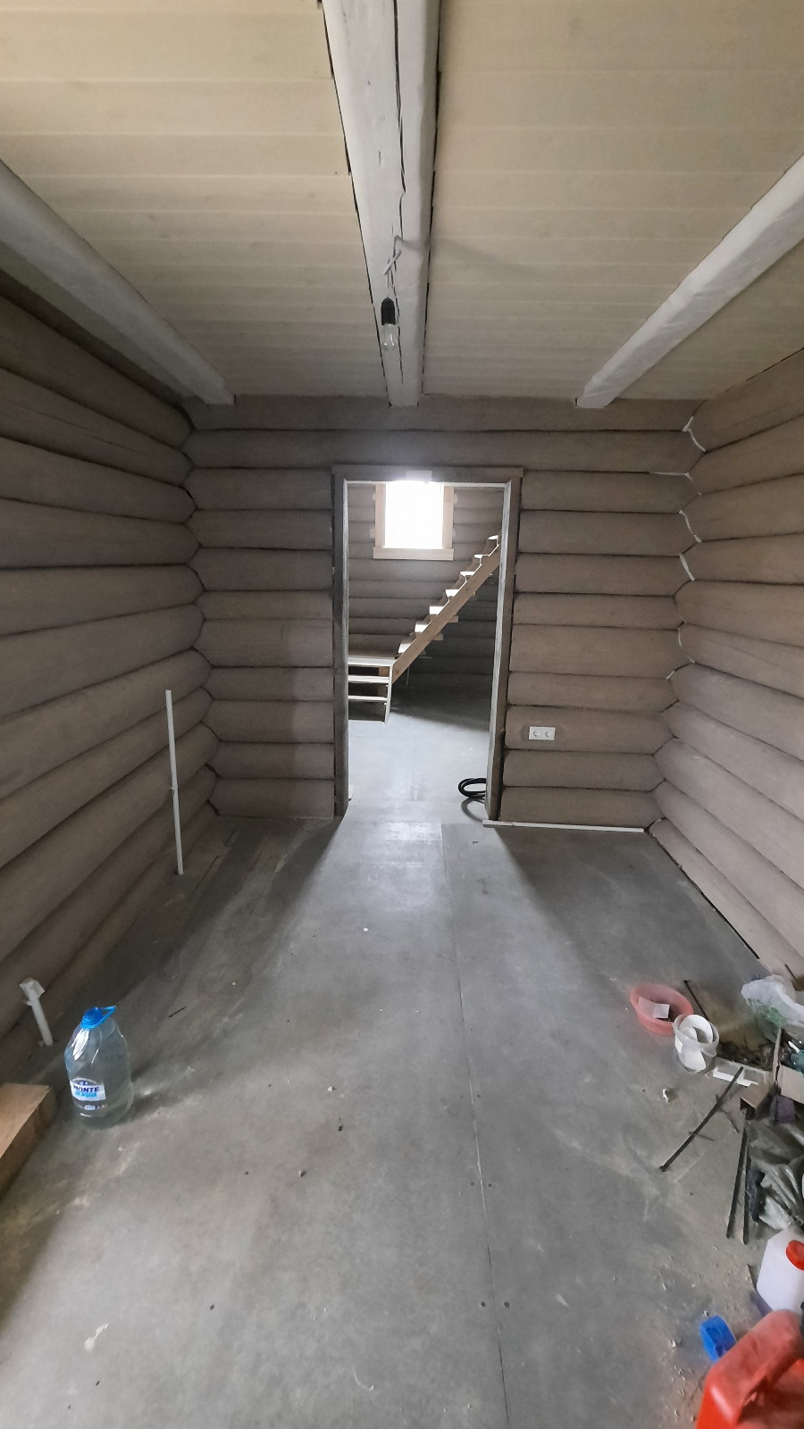 Первый этаж состоит из кухни-гостиной, совместного санузла, прихожей, бойлерной и просторной комнаты.