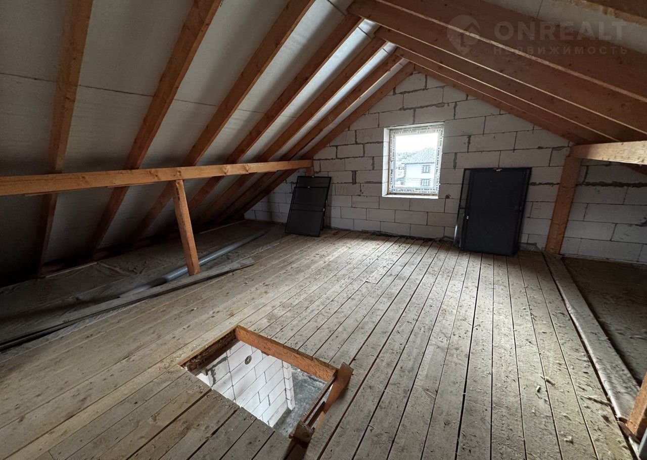 Крыша двухскатная, покрыта металлочерепицей, со второго этажа имеется выход на чердак где можно организовать еще одну большую комнату, либо кладовую для хранения сезонных вещей.