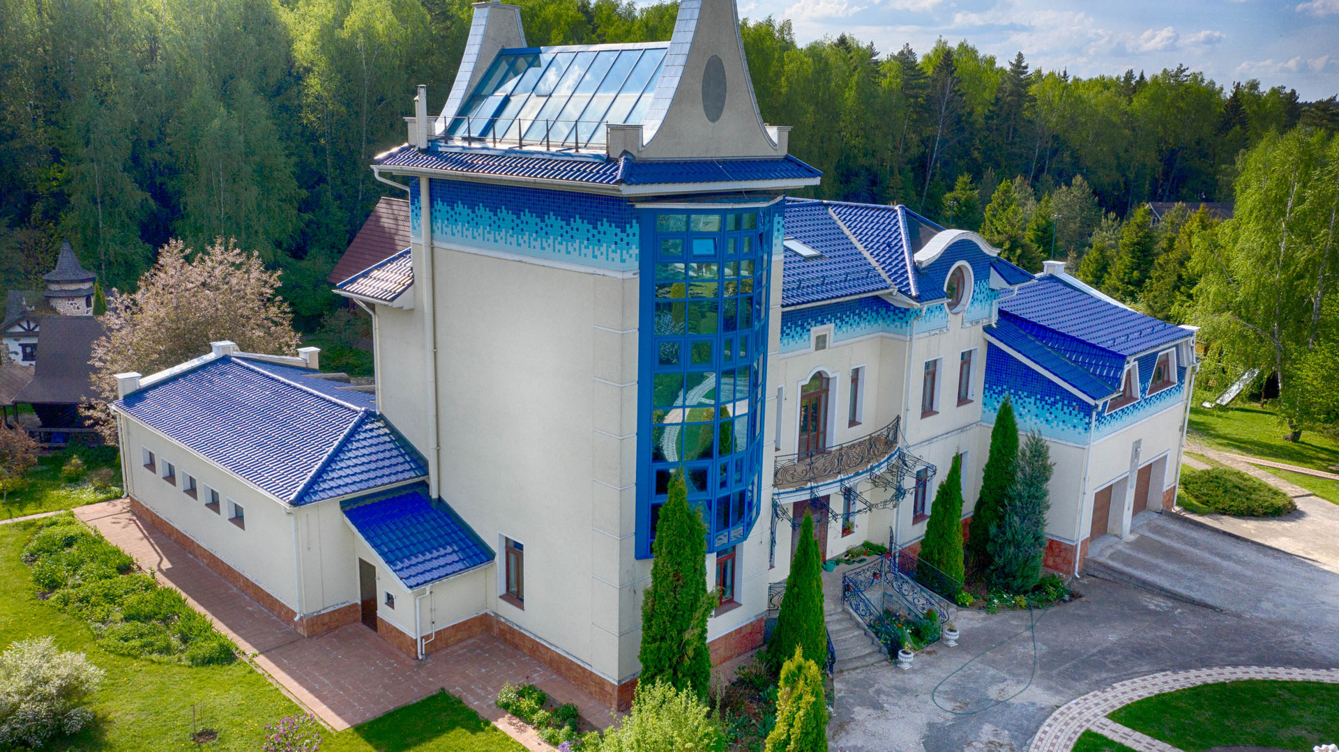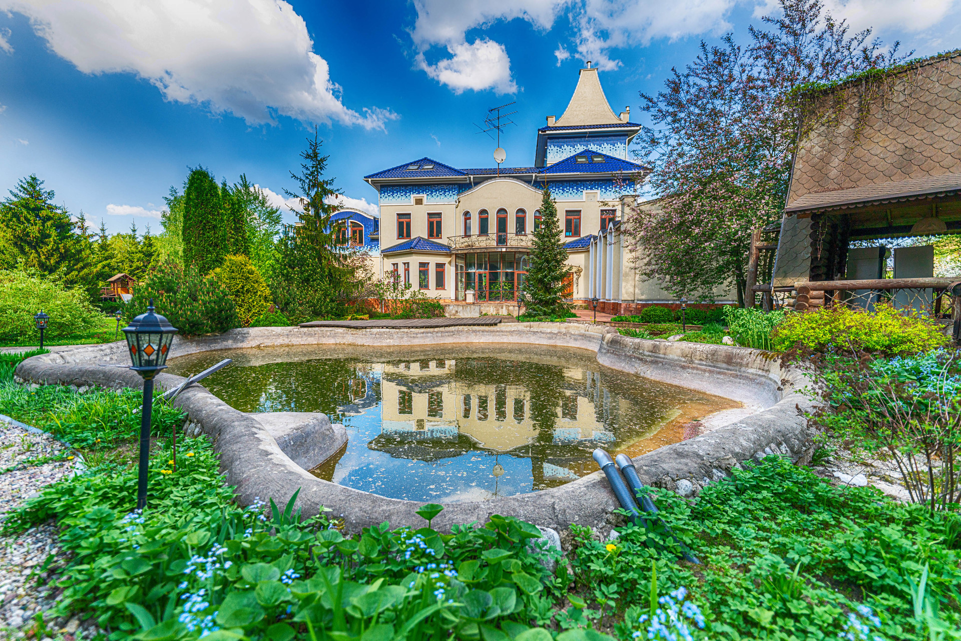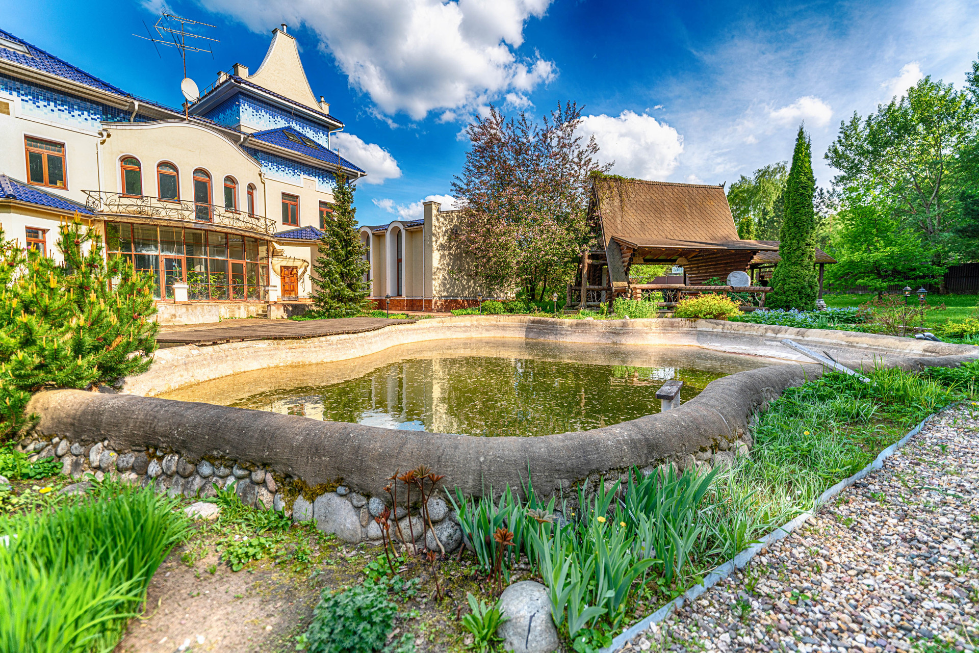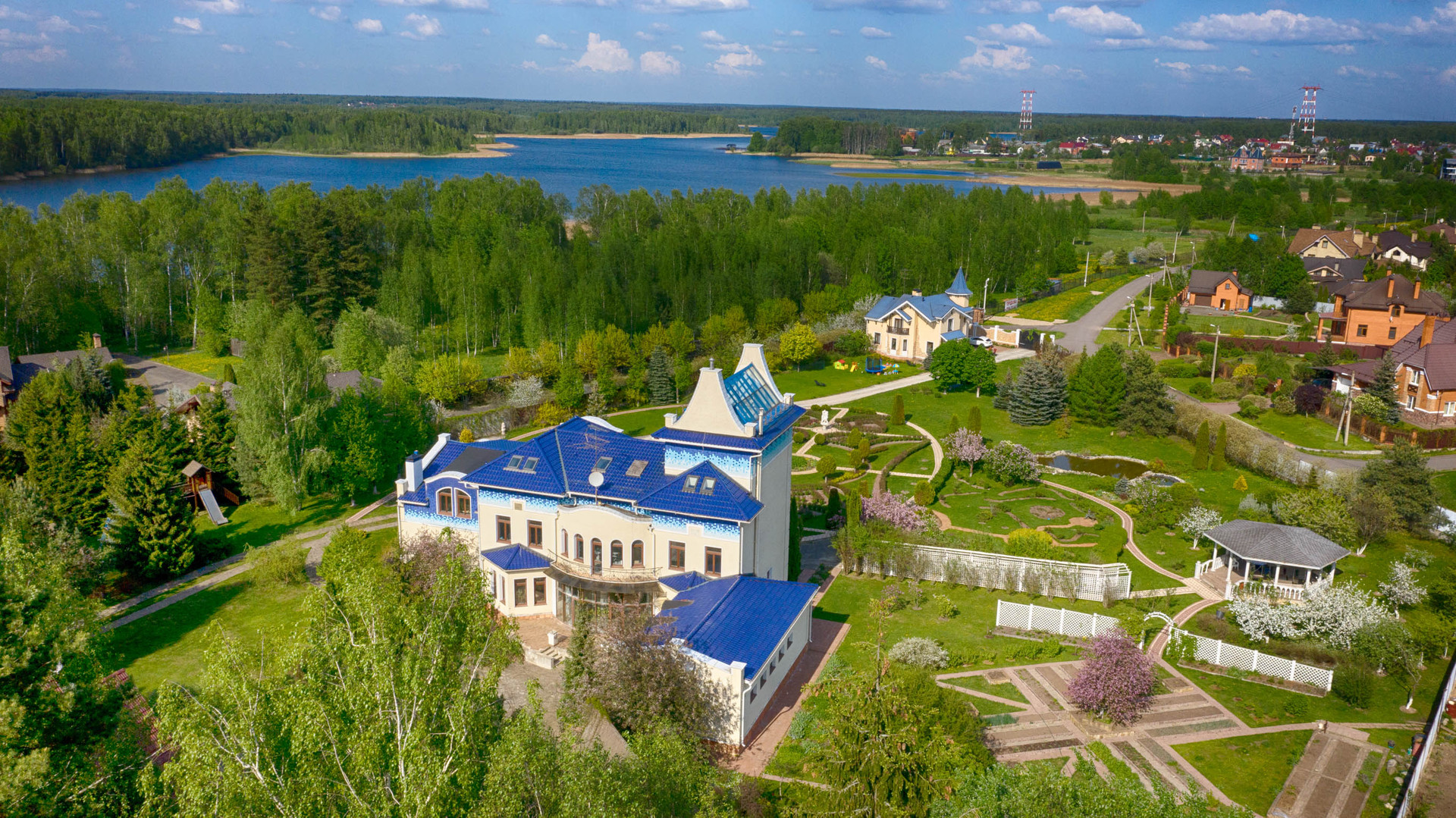 Продается загородная усадьба, расположенная в далеке от городского шума и суеты на берегу Пяловского водохранилища в закрытом, охраняемом коттеджном поселке Никульское на участие площадью в 1.3 Га. На въезде в усадьбу расположен дом для гостей общей площадью 181 м2, полностью меблирован и готов к проживанию, с гаражом и вольером для собак. В центральной части участка собственником с любовью разбит регулярный сад во французском стиле, с фонтанами, мощенными дорожками, архитектурными композициями и искусственным прудом и патио-барбекю. Архитектурной доминантой усадьбы является 3-х этажный жилой дом общей площадью 833 м2 с бассейном и гаражом на 4 автомобиля. В активной эксплуатации находится зона СПА с бассейном и спортивным залом, а также гараж, на остальной части дома проведены все инженерные и черновые отделочные работы, дом подготовлен к финишной отделке. Фасадная сторона дома выходит своими онами на сад, от дома к патио-барбекю ведет дорожка, украшенная перголой. Задняя сторона дома выходит своими окнами на искусственный пруд и лесной массив, на противоположном от дома берегу пруда располагается детский домик Феи. Также на берегу пруда находится баня на дровах с каминным залом в рыцарском стиле и комнатой отдыха на втором этаже, настоящее деревянное чудо финских мастеров. Рядом с прудом также располагается мангал-шале, с летней кухней. В укромном уголке участка находится дом для персонала, со своей системой жизнеобеспечения и отопления, в нескольких метрах от гостевого дома расположен теннисный корт, покрытие типа Теннисит. До береговой зоны с причалом для лодок от границы участка 150 метров.