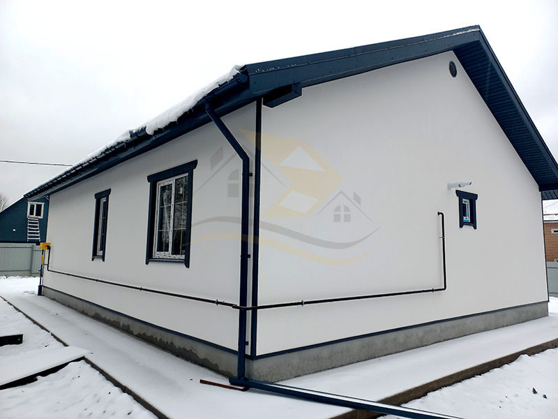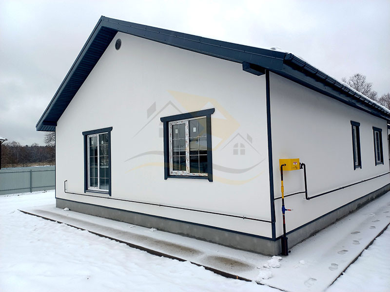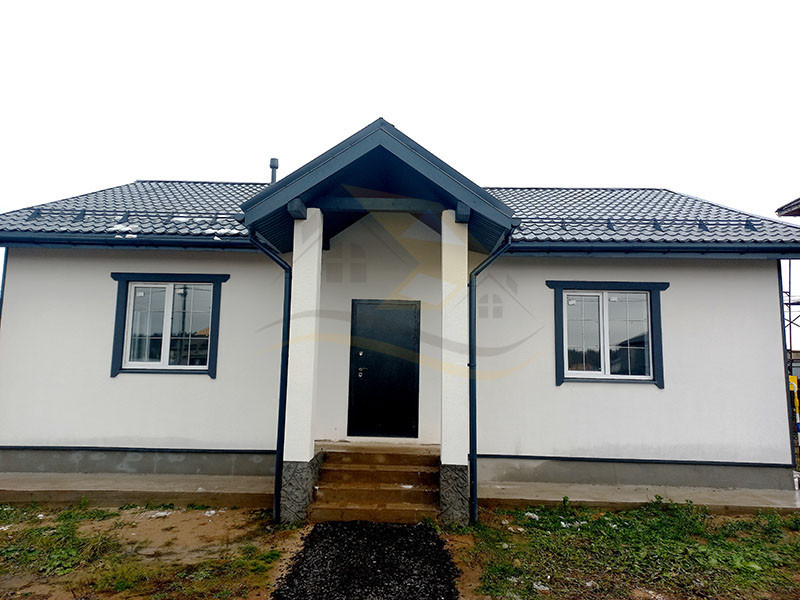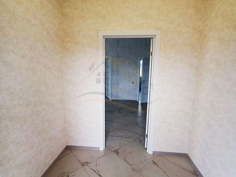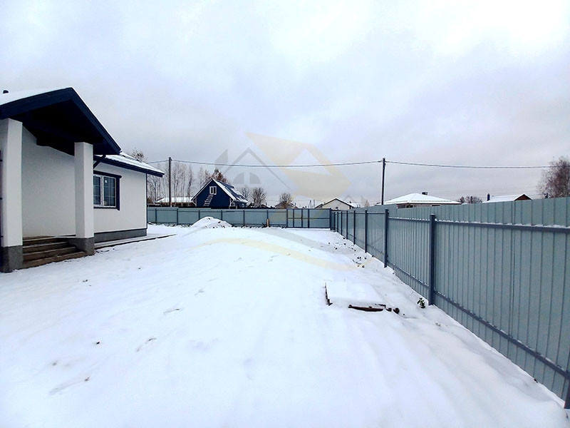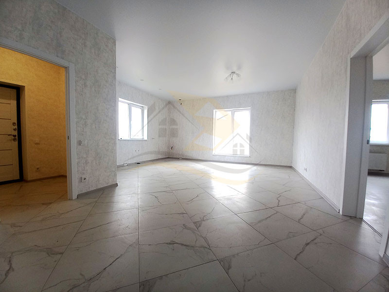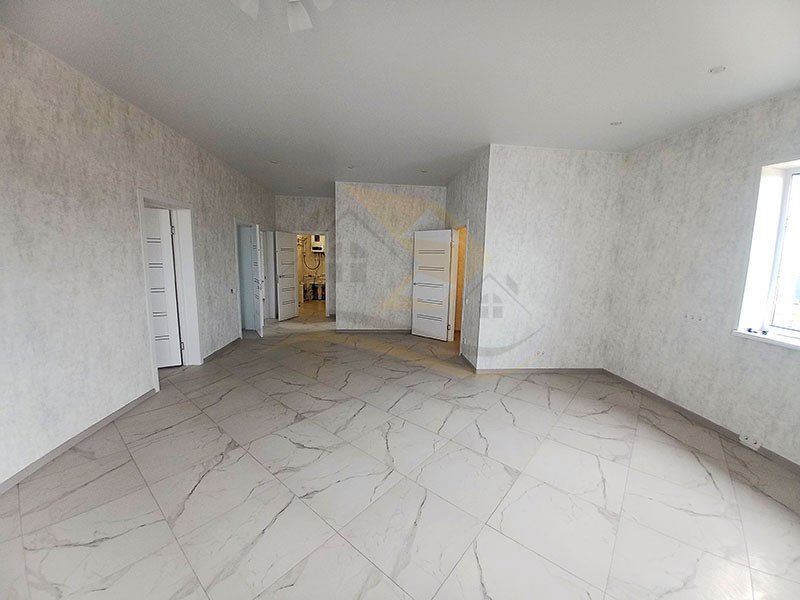 Планировка дома включает прихожую (4,0 кв.м.), просторную гостиную комнату с кухней ( 45 кв.м.), ванную комнату с санузлом, бойлерную и три отдельные комнаты ( 18,5 / 16,6 / 15,5 кв.м.). В прихожей, гостиной, ванной и бойлерной комнатах установлен теплый пол с плиткой, а в комнатах – радиаторы с ламинатным покрытием. Стены оформлены прекрасной цветовой палитрой в светлых тонах. Окна в доме выполнены из качественного ПВХ (двухкамерные), входная дверь - капитальная металлическая, а крыша покрыта металлочерепицей.