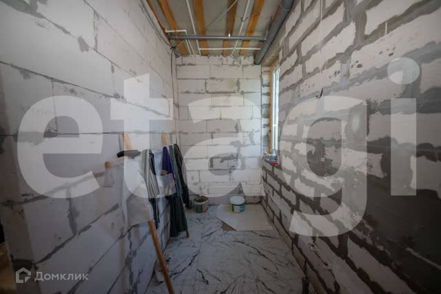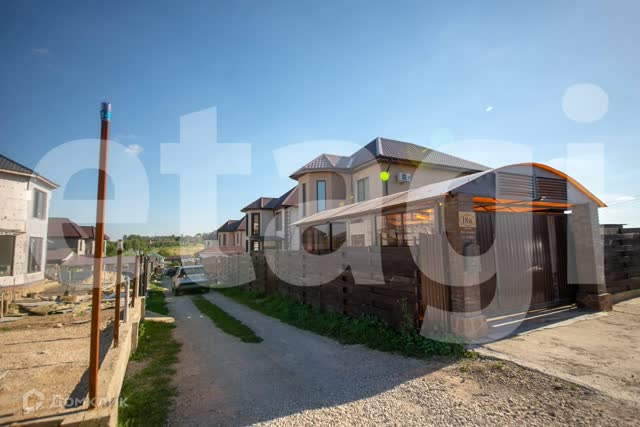 Дом из газосиликатного кирпича, утеплитель пенополистерол, верхнее покрытие дома штукатурка цвета топленого молока. Фундамент ленточно-свайный, лента 1,5метра, каждые два метра свая. Дом расположен на пяти сотках, двор огорожен металлическим забором. По периметру дома бетонная опалубка, ливневая система дома уводит воду в дренажную систему.