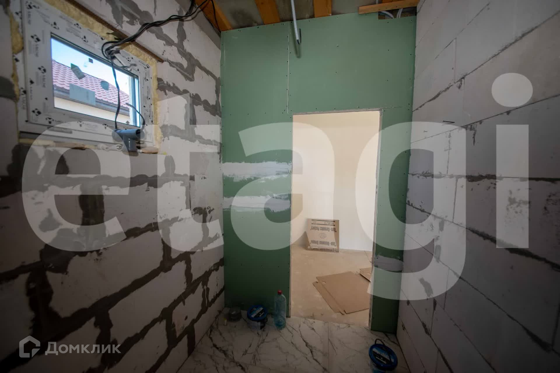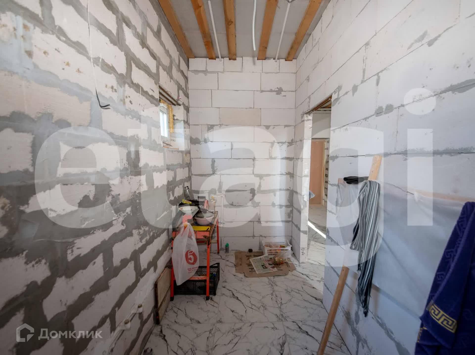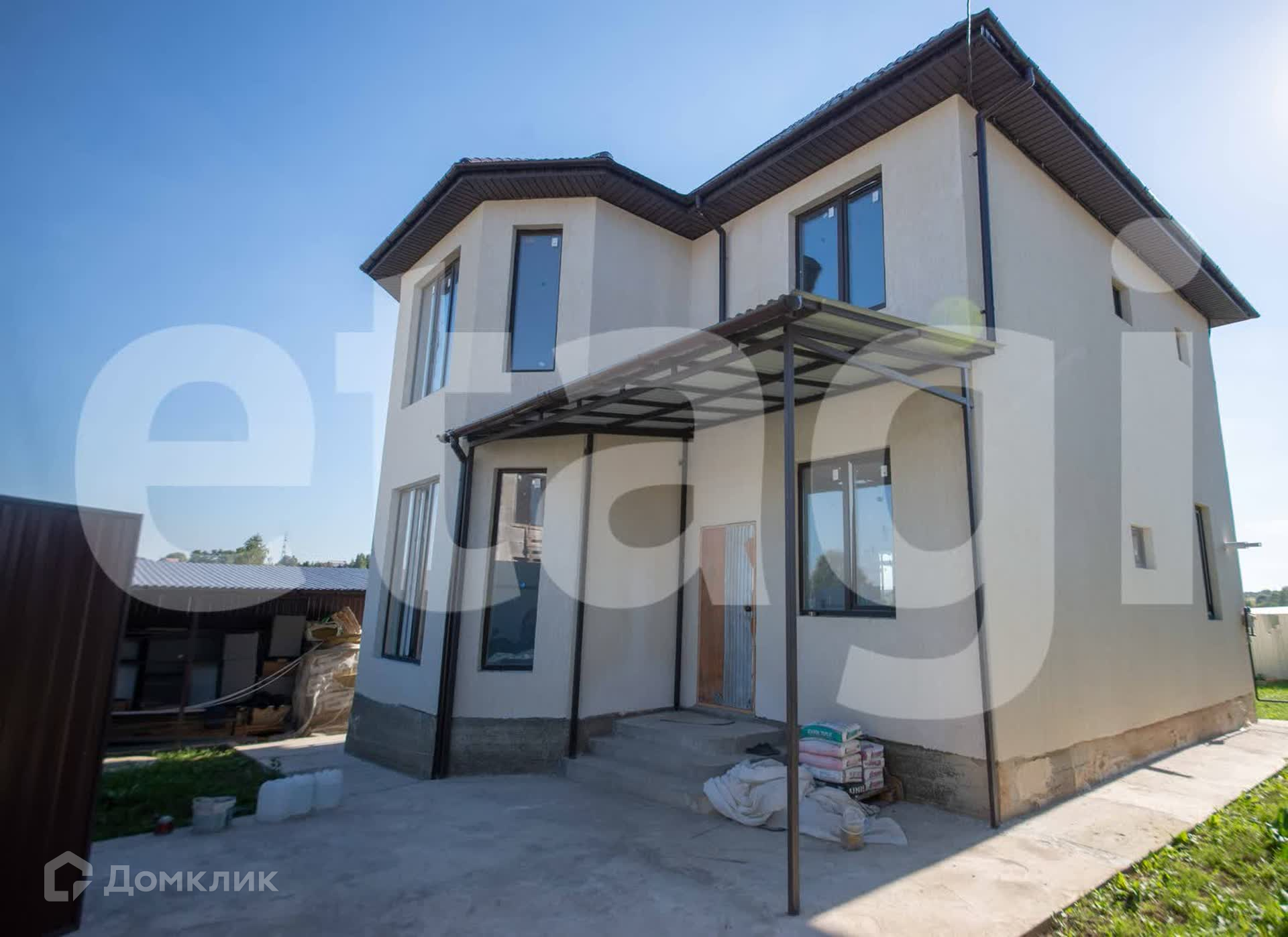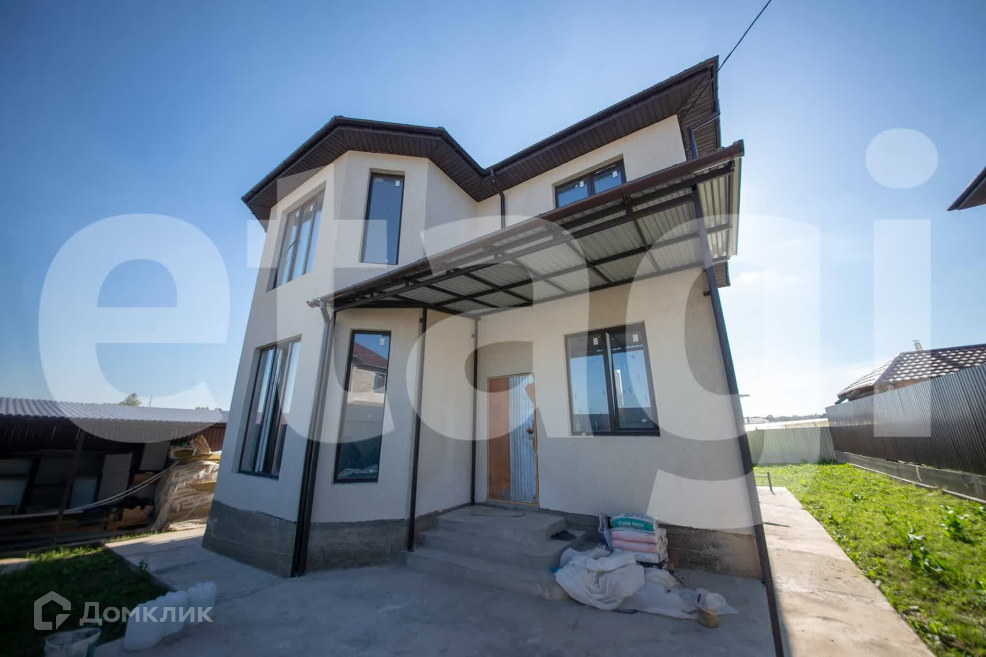Дом из газосиликатного кирпича, утеплитель пенополистерол, верхнее покрытие дома штукатурка цвета топленого молока. Фундамент ленточно-свайный, лента 1,5метра, каждые два метра свая. Дом расположен на пяти сотках, двор огорожен металлическим забором. По периметру дома бетонная опалубка, ливневая система дома уводит воду в дренажную систему.