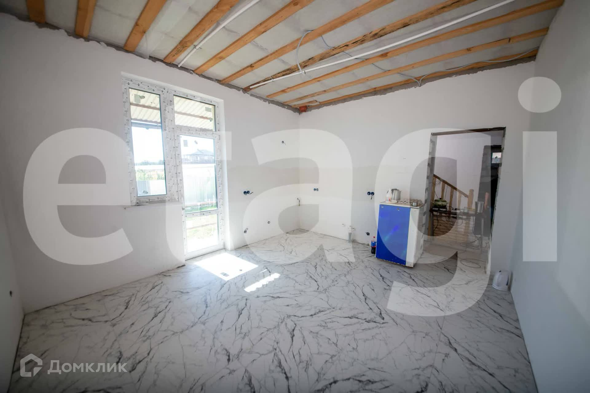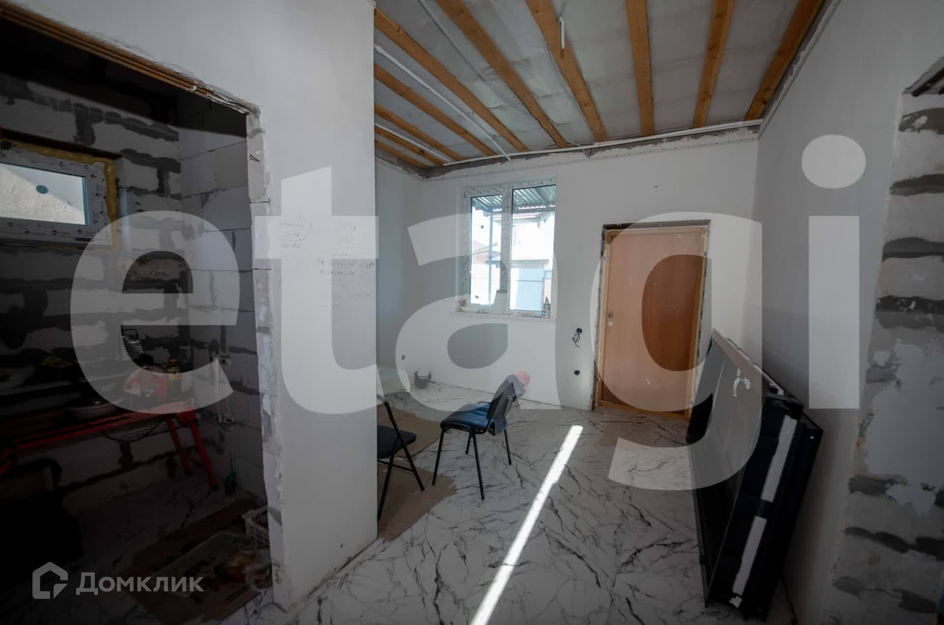 Дом продается с ремонтом и установленным теплым полом. Входная дверь качественная, не требует замены. Во дворе сделан навес для автомобиля, позади дома установлена терраса, выход на которую осуществляется из кухни.