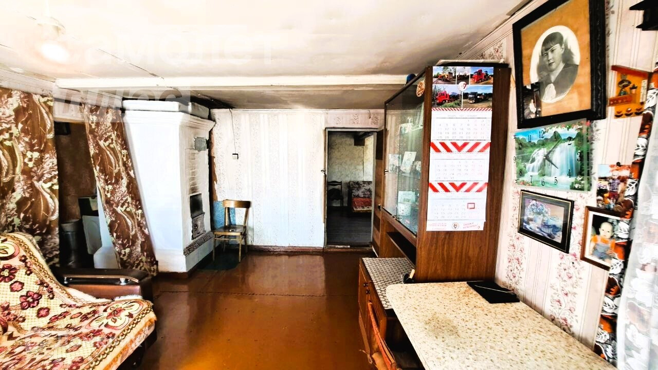 В доме 2 комнаты,кухня - гостиная,туалет,кладовки.Отопление печное.Дом из бруса,фундамент деревянный.Поднимали 5 лет назад.Также несколько раз меняли проводку по всему дому.