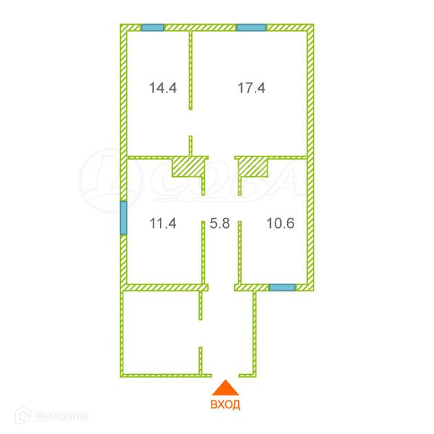 Общая площадь 59.6 м2