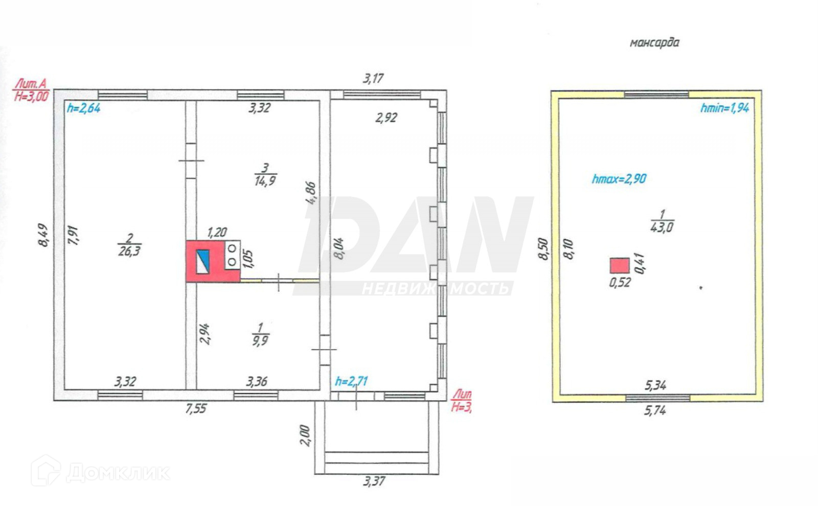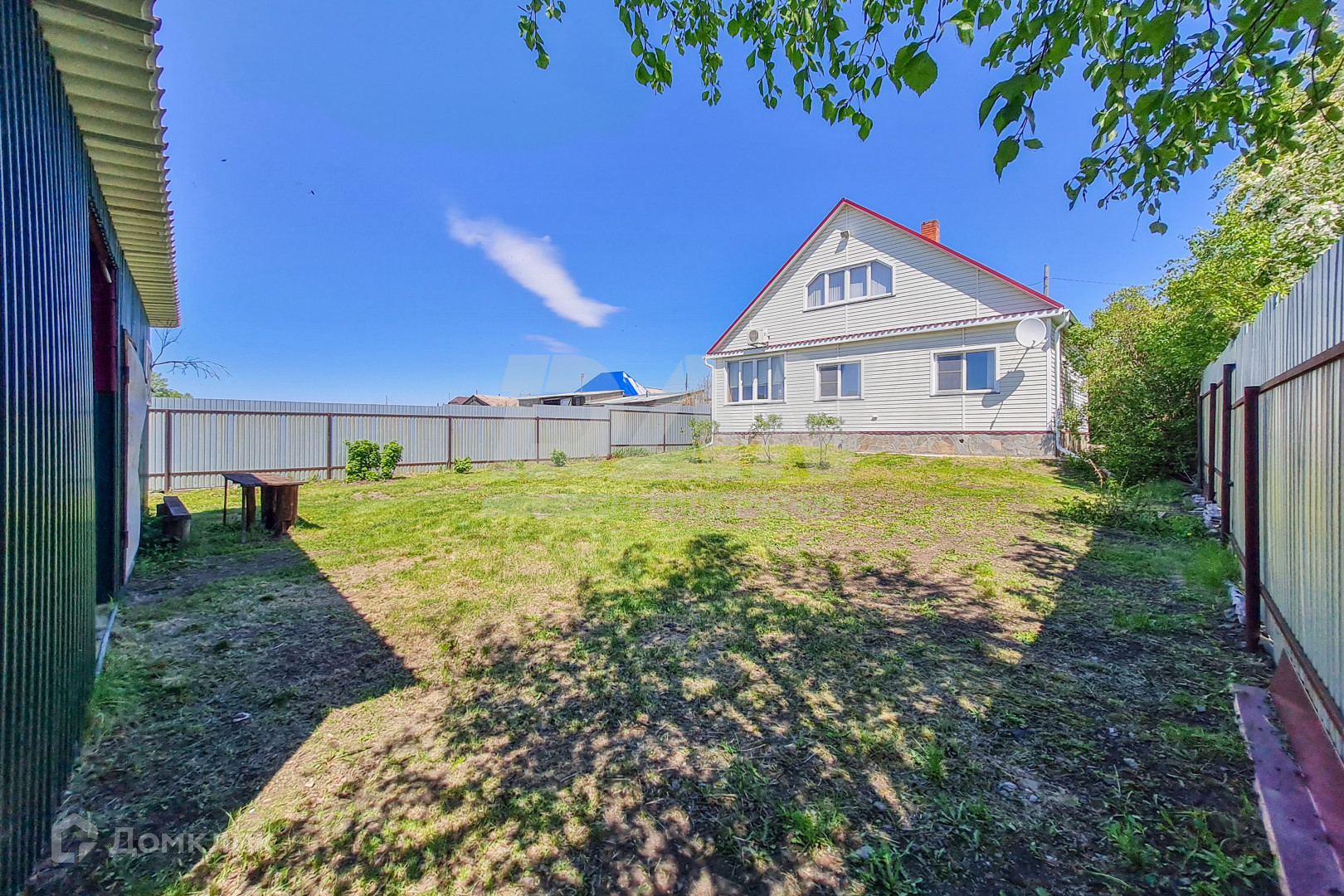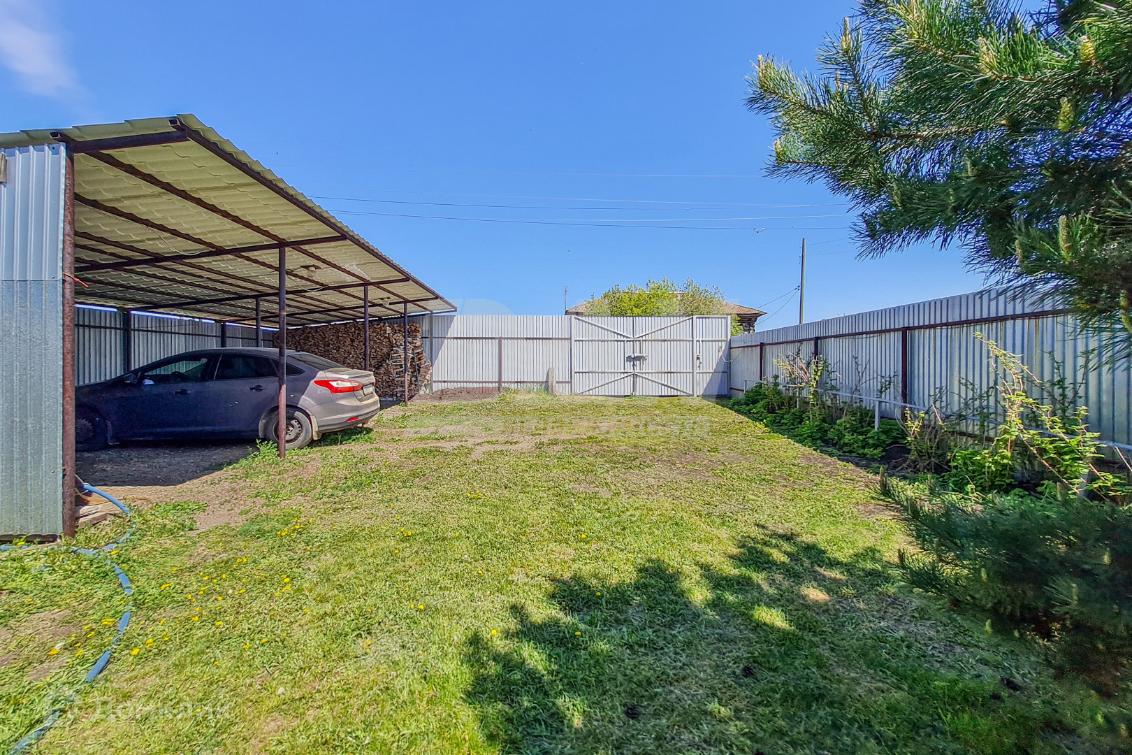 Забор из профнастила по всему периметру, крытая стоянка на 4 авто, хозблок из профнастила с внутренней отделкой.