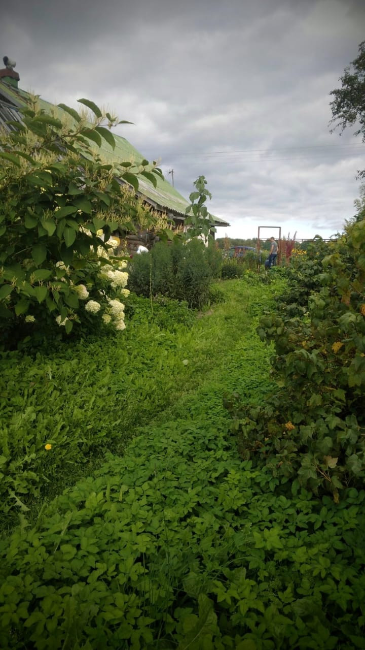 - Есть дровенник и сад с яблонями и вишнями.